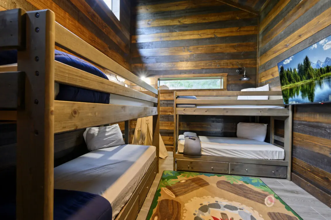 🌤️ Bunk Room with Loft: Includes 4 twin beds and 1 full bed (loft accessed by ladder), perfect for kids or groups.