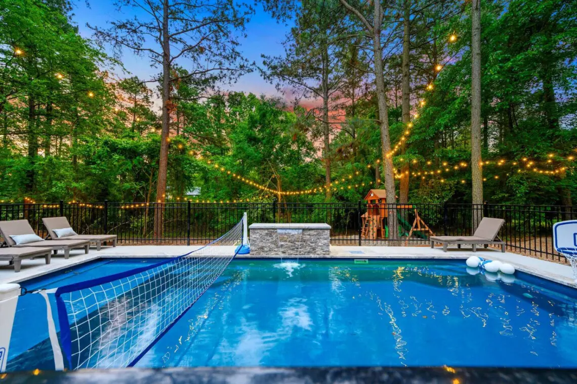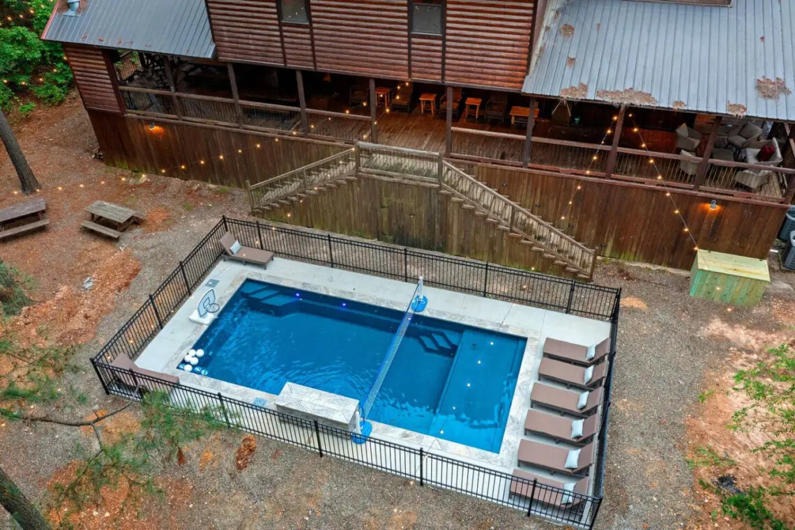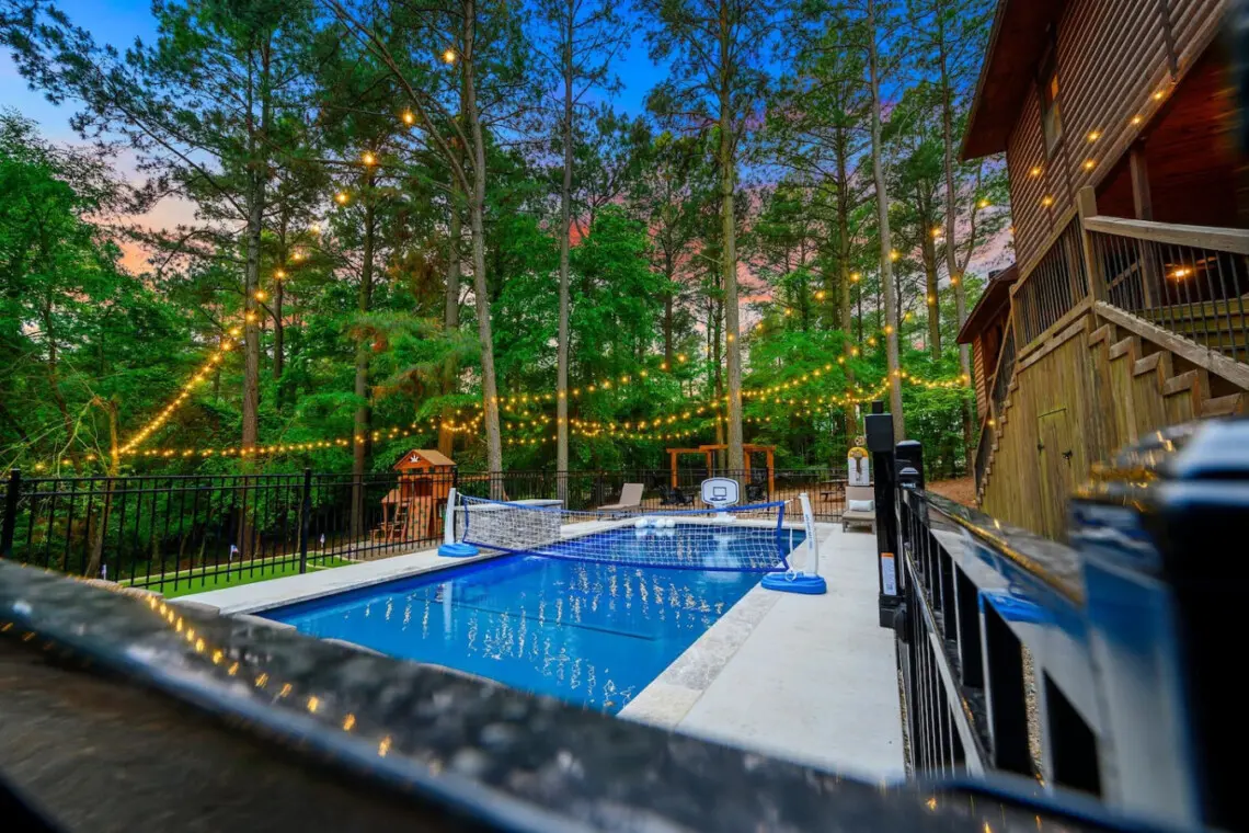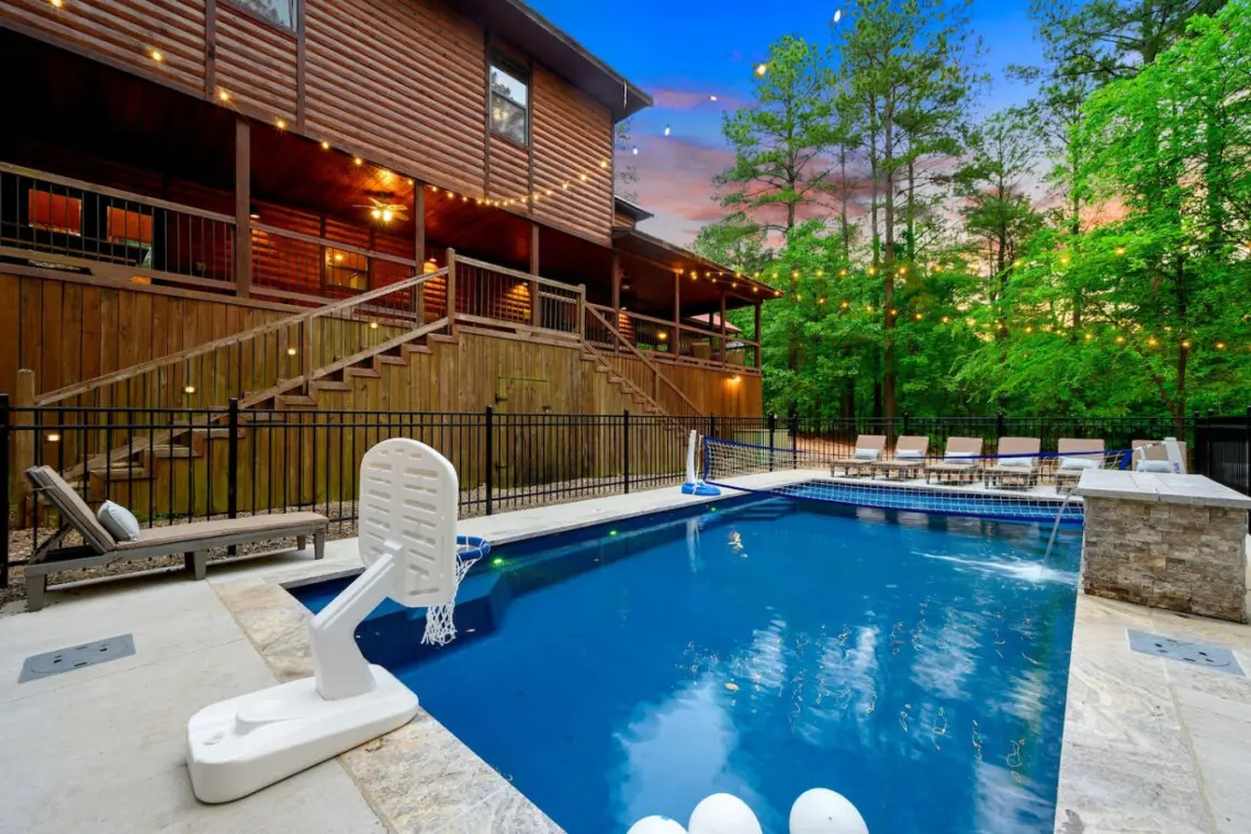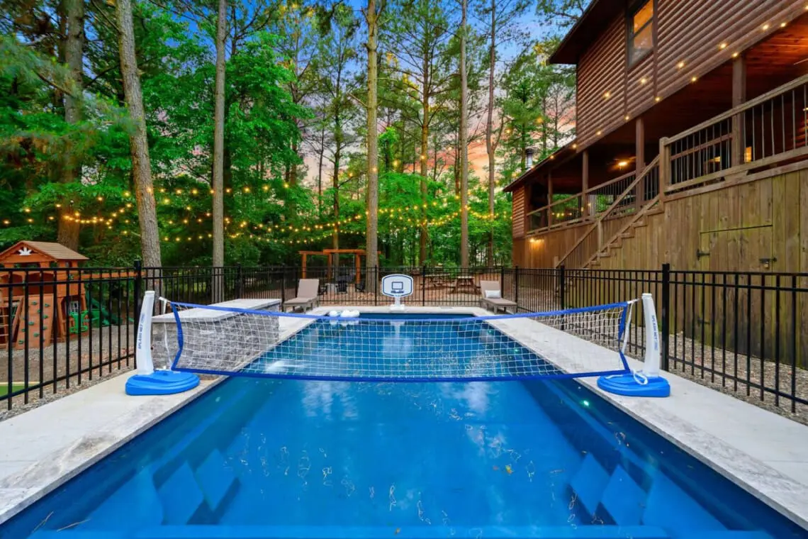 👣 Private Pool: Dive in and enjoy your own pool with optional year-round heating! Includes a volleyball net and basketball goal for extra fun in the sun.