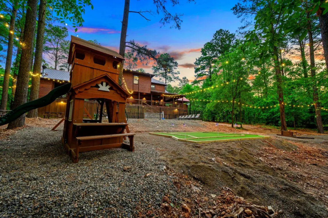 Welcome to BirchSquatch, where upscale comfort meets endless entertainment. Nestled in the scenic beauty of Broken Bow, this spacious cabin retreat is designed for families, friends, and even your four-legged companions. With a private pool, full game room, mini golf course, and room for 24 guests, BirchSquatch is your one-stop destination for memory-making.