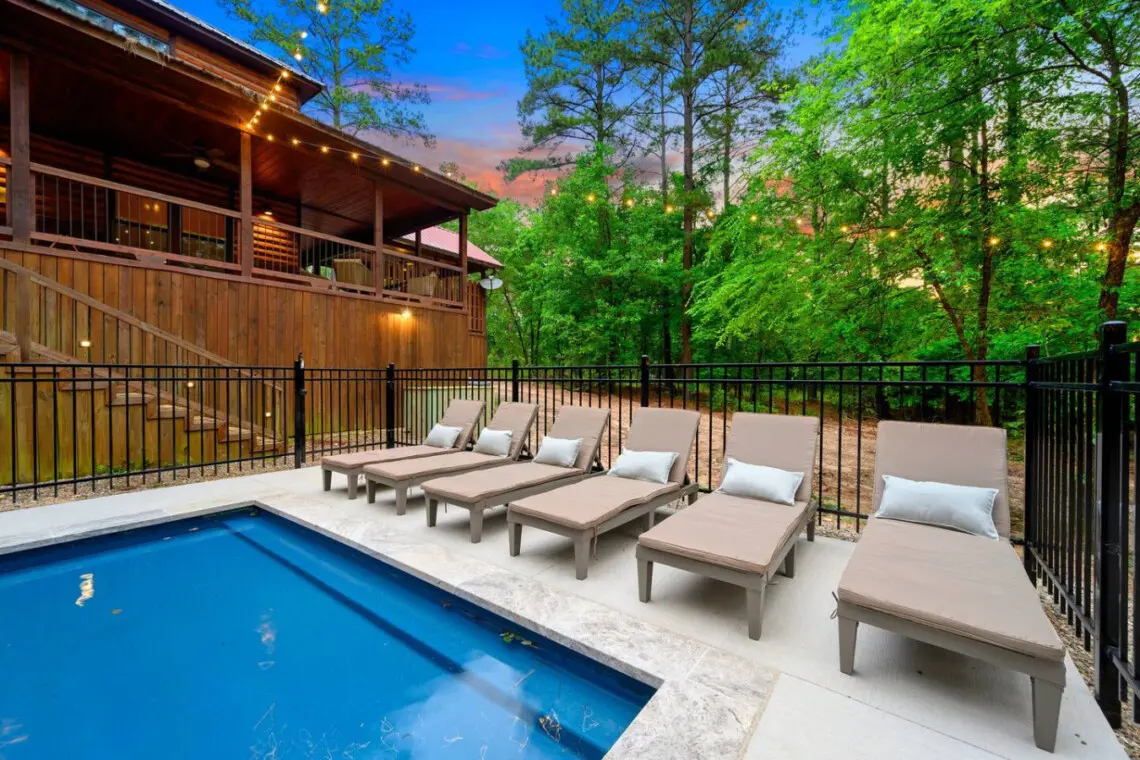 Big, bold, and built for fun—BirchSquatch is the ultimate luxury retreat in Broken Bow. Sleeping up to 24 guests, this spacious cabin features a private pool, hot tub, mini golf, game room, and more for an unforgettable group getaway.