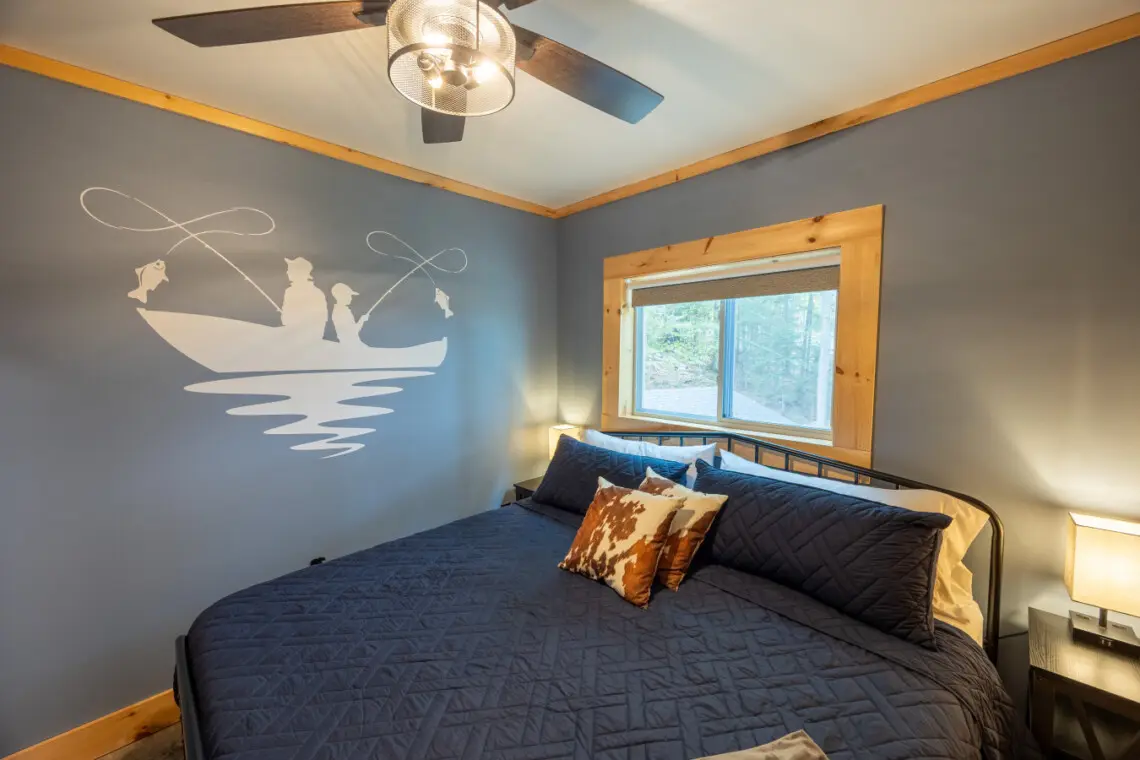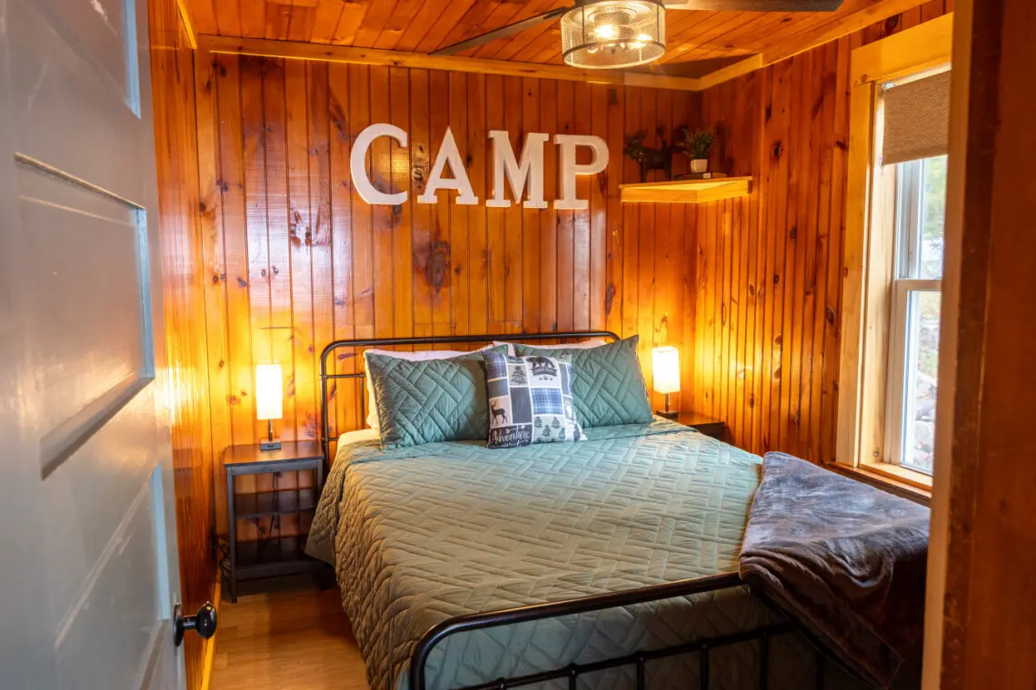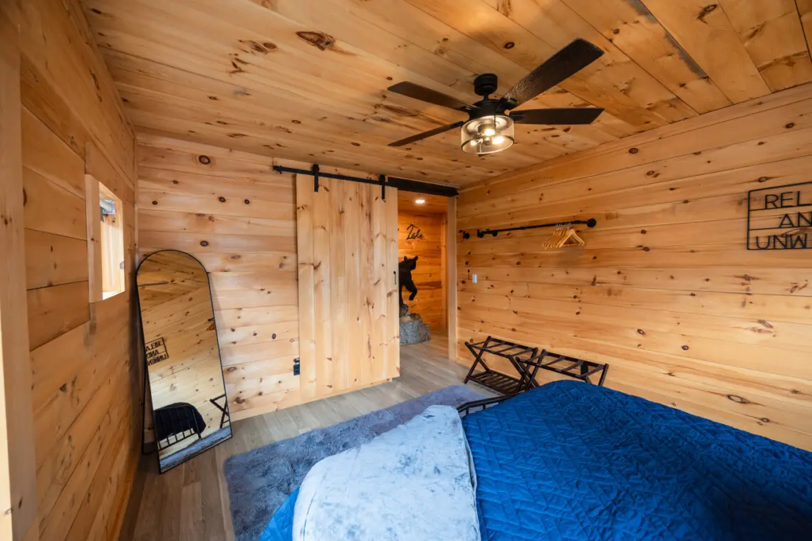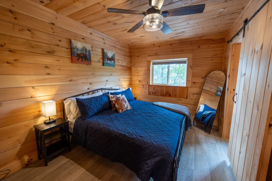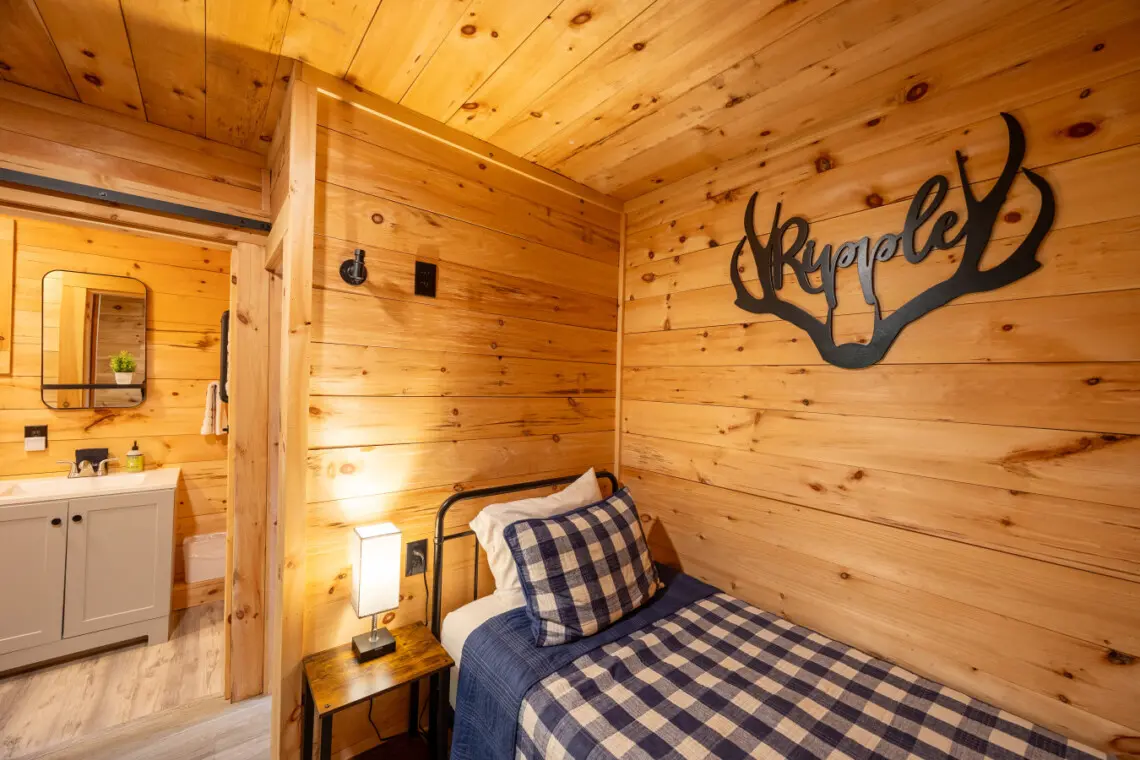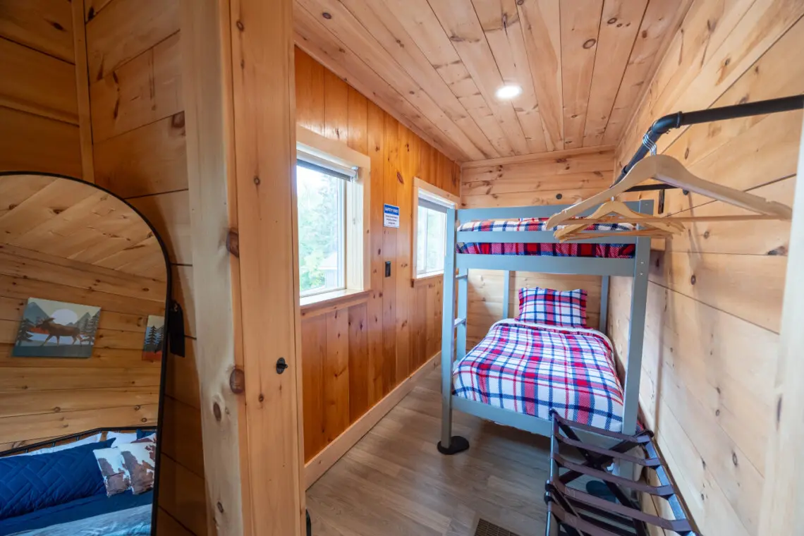 ☀️ Ripple (Cabin 3): Sleeps 2 guests with a king bed and a twin bunk bed.