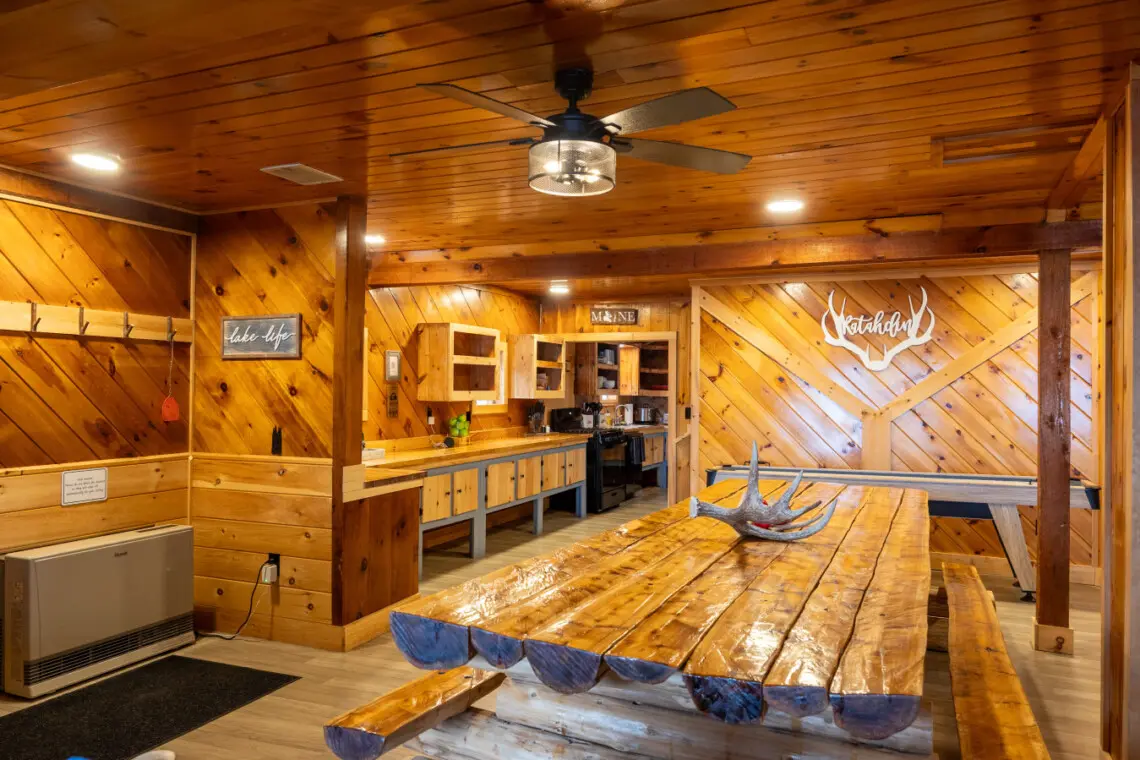 ☀️ Katahdin (Cabin 4): Sleeps 13 guests with 4 king beds and 6 twin beds.