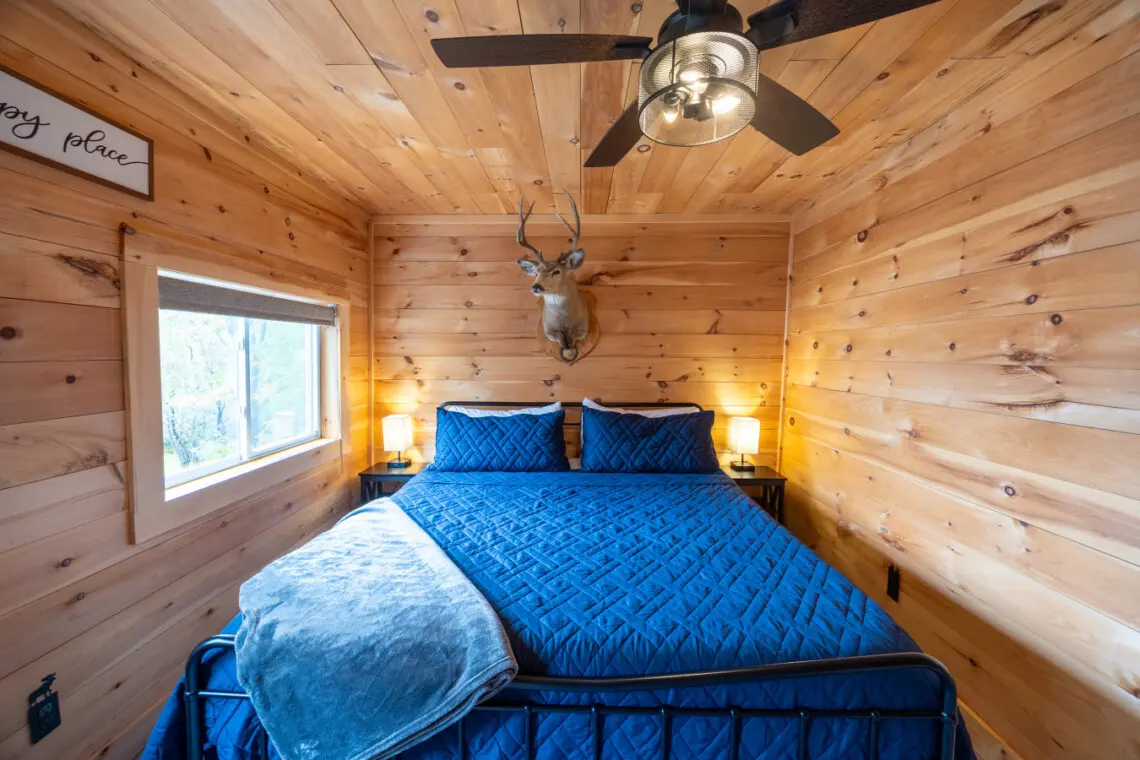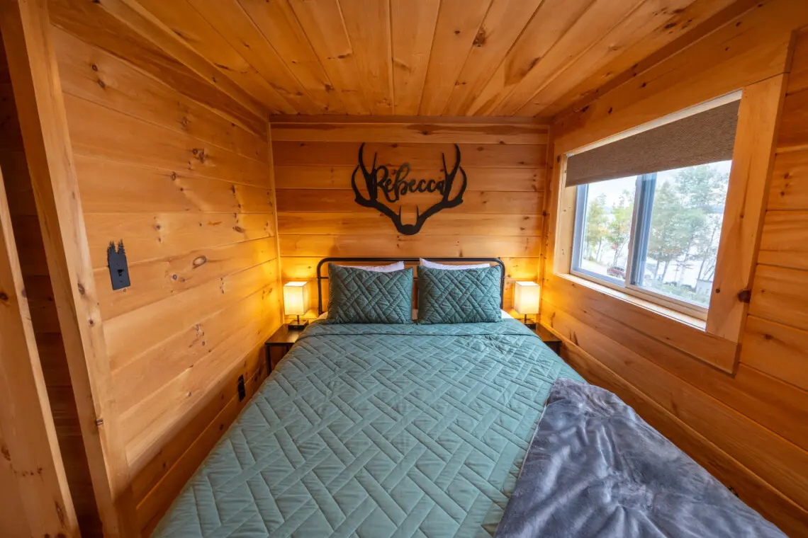 ☀️ Rebecca (Cabin 1): Sleeps 2 guests with a queen bed.