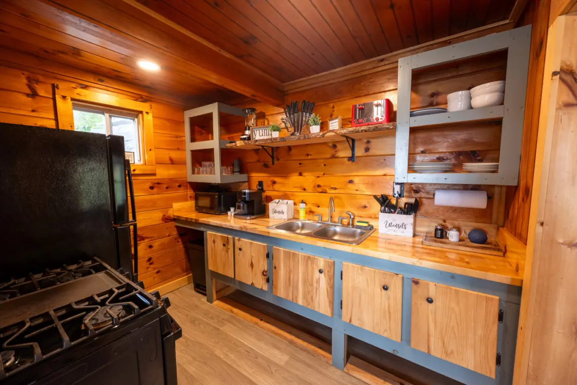 ☀️ Fully Stocked Kitchens: Each cabin is equipped with a fully stocked kitchen, making it easy to prepare meals during your stay.