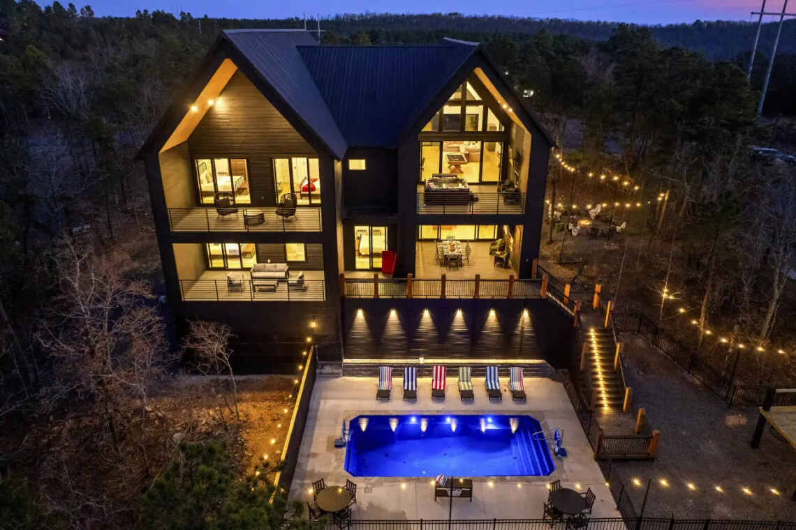 Designed for families, large groups, and unforgettable gatherings, this spacious cabin sleeps up to 30 guests and offers exceptional comfort, entertainment, and outdoor living. With breathtaking views, six covered decks and balconies, a heated private pool, and a fully equipped game room, Eagle’s Vista 🦅 is an ideal choice for travelers searching for a luxury Broken Bow cabin for large groups. Whether you’re planning a family reunion, corporate retreat, or group getaway, this cabin delivers the perfect blend of relaxation and adventure in the heart of Broken Bow.