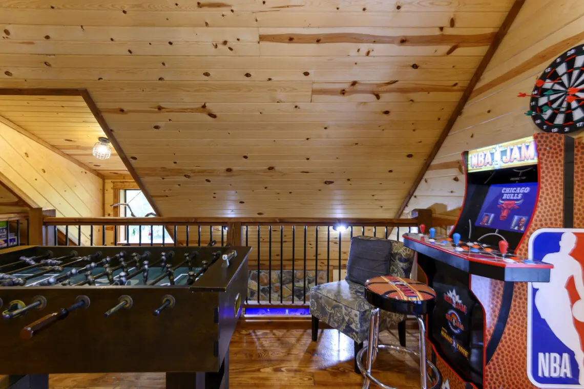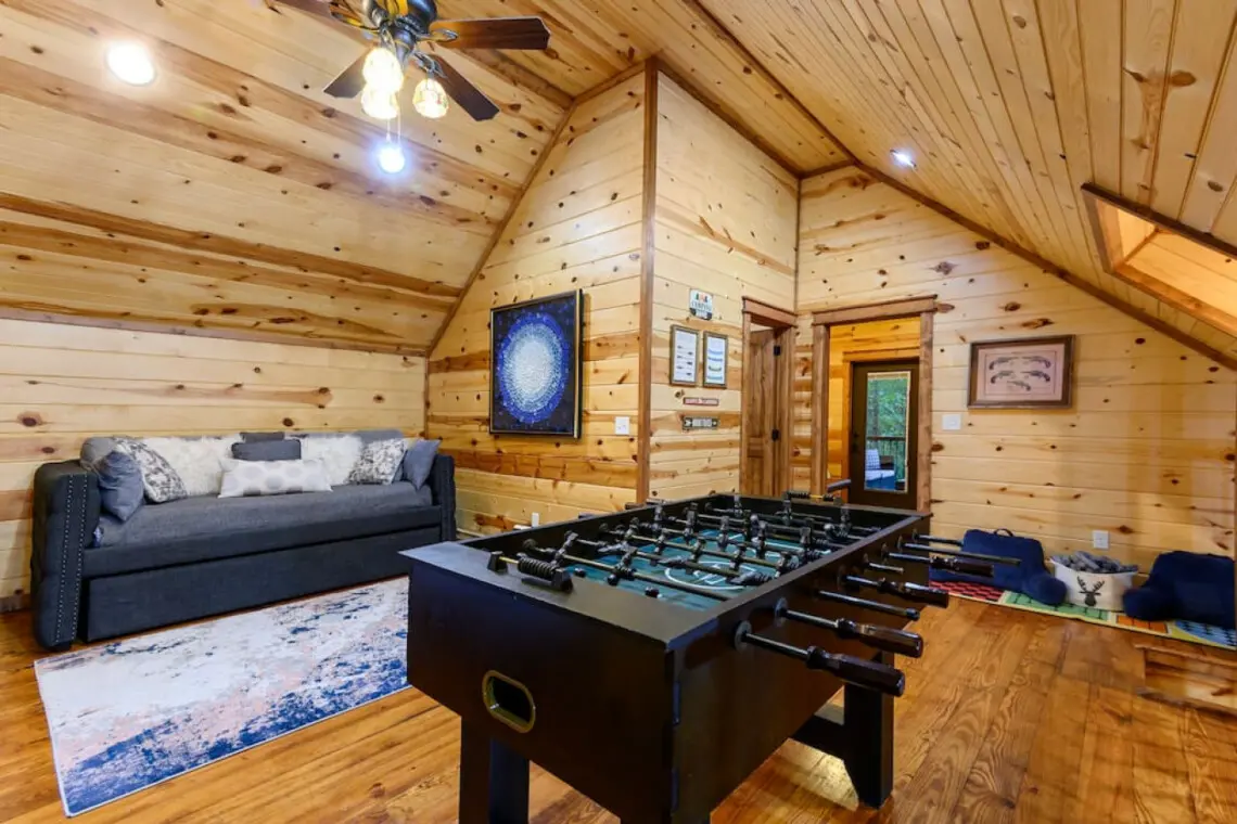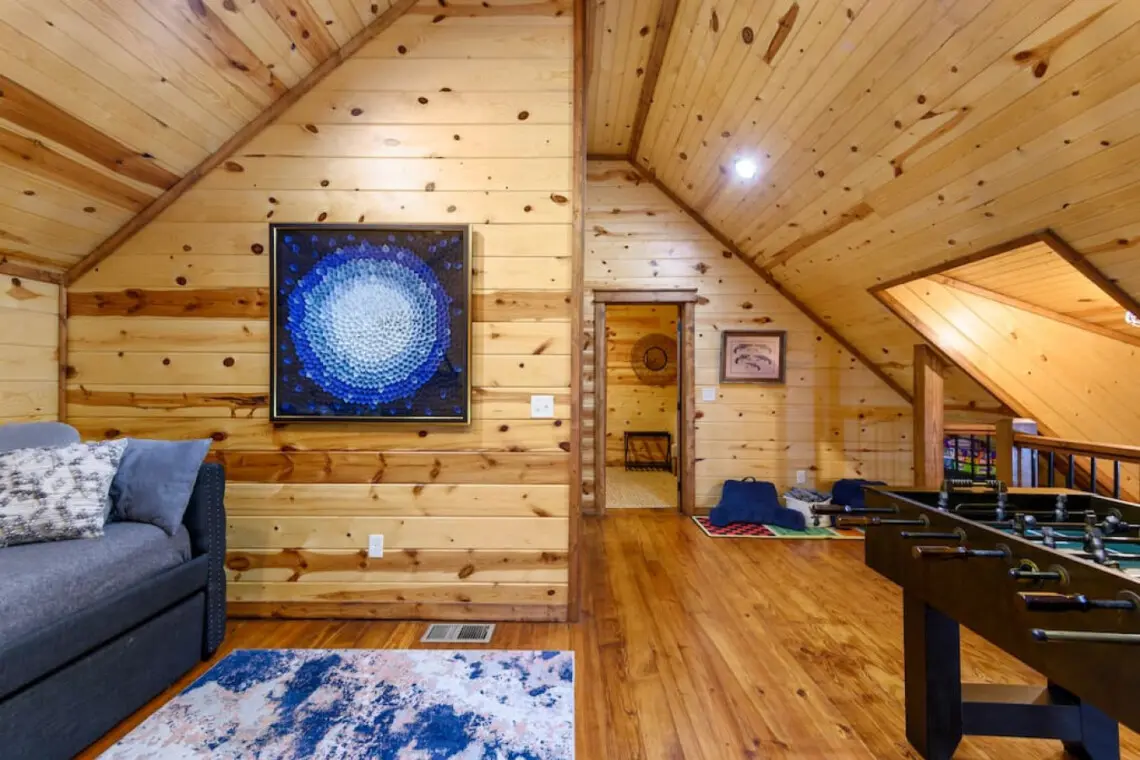 ⭐ Sleeping Arrangements: The cabin boasts two cozy bedrooms and a loft, which includes a daybed with a trundle featuring two twin mattresses, perfect for kids or extra guests.