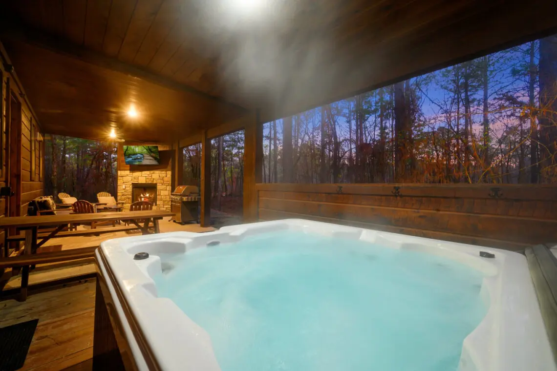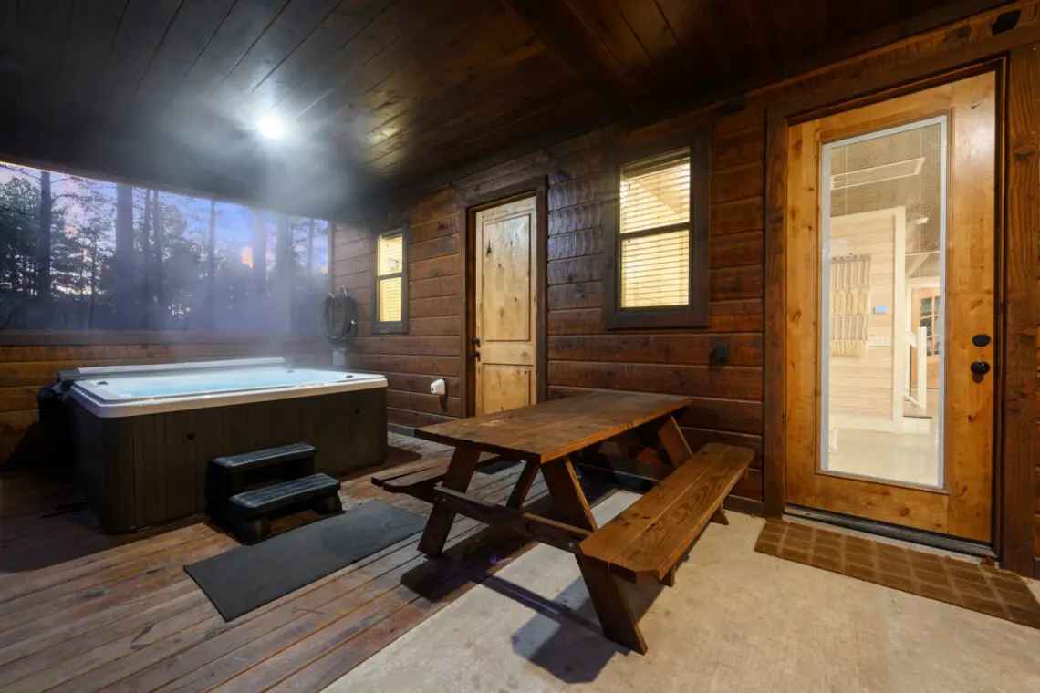 🌟 Hot Tub Hideaway: Relax in the covered hot tub and soak in the peaceful ambiance of nature.