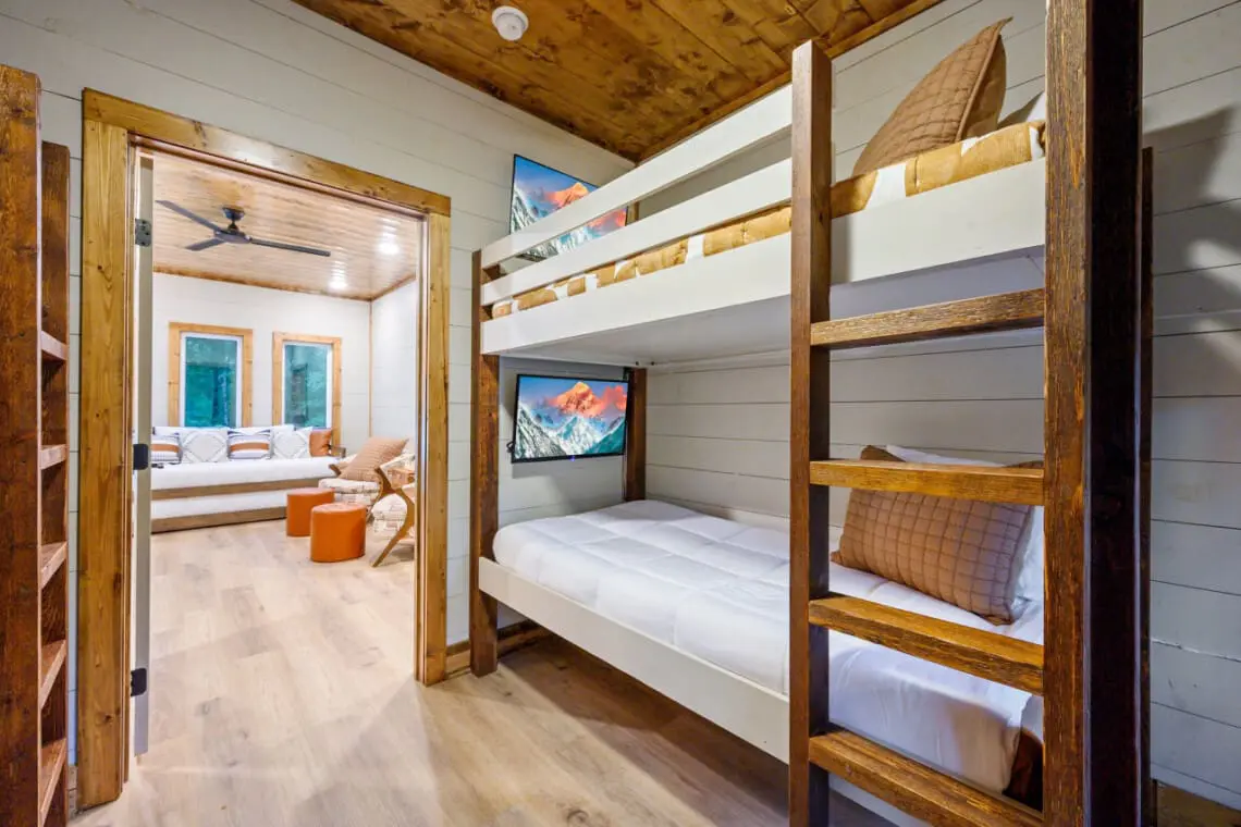 💎 Bunkroom: A bunkroom with two twin bunk beds, each bed having its own TV, provides a fun and comfortable space for kids or additional guests.