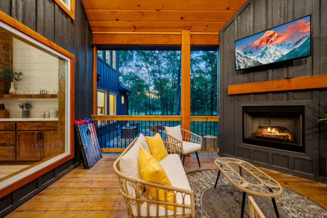 💎 Entertainment: Watch your favorite shows on the smart TV by the outdoor fireplace, or relax in the comfortable outdoor furniture, including a cozy egg chair.
