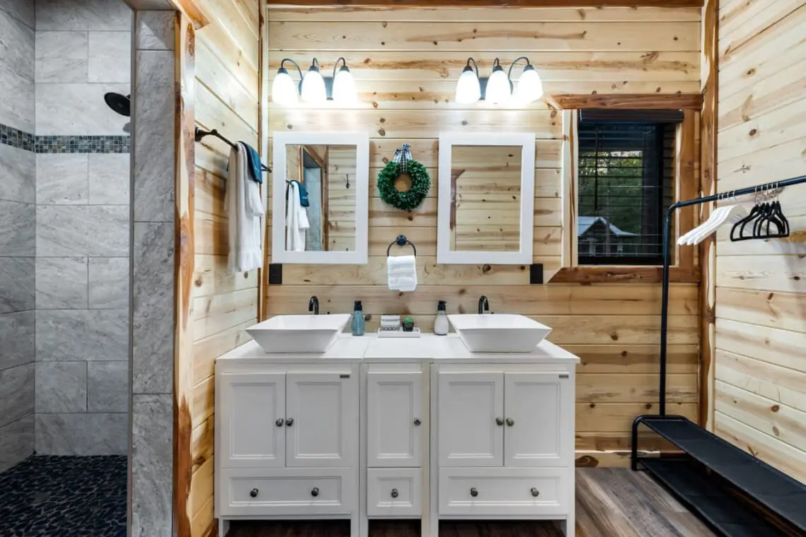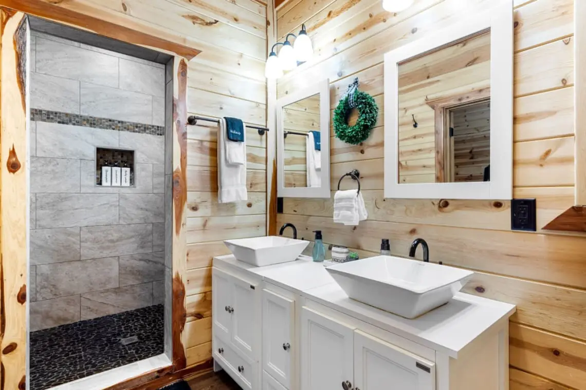 ๐ Double Vanity: Freshen up at the double vanity with two elegant vessel sinks, offering ample space for couples.