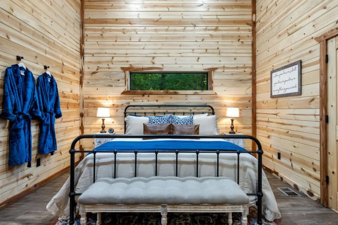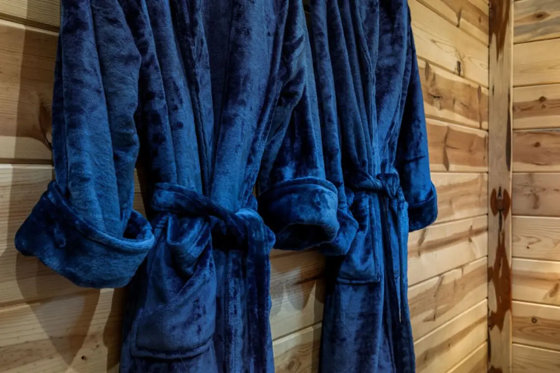 ๐ Luxurious King Bed: Drift into a peaceful sleep on the plush king-sized bed, featuring soft linens and cozy couple’s robes for added comfort.