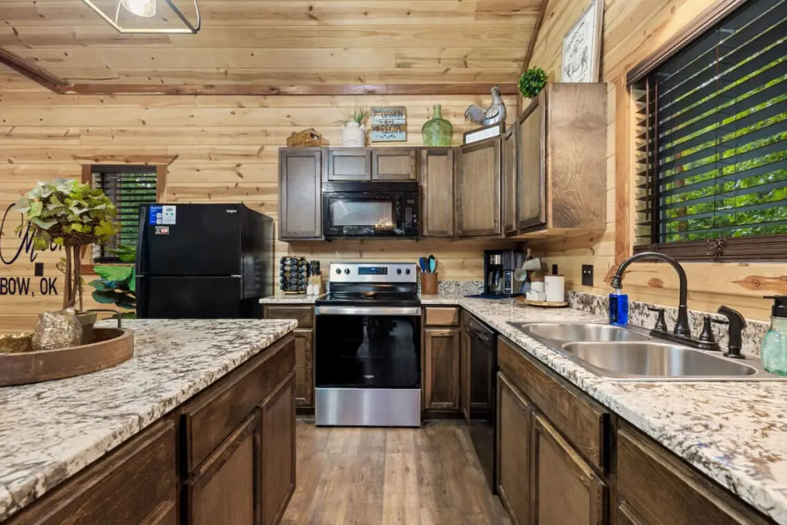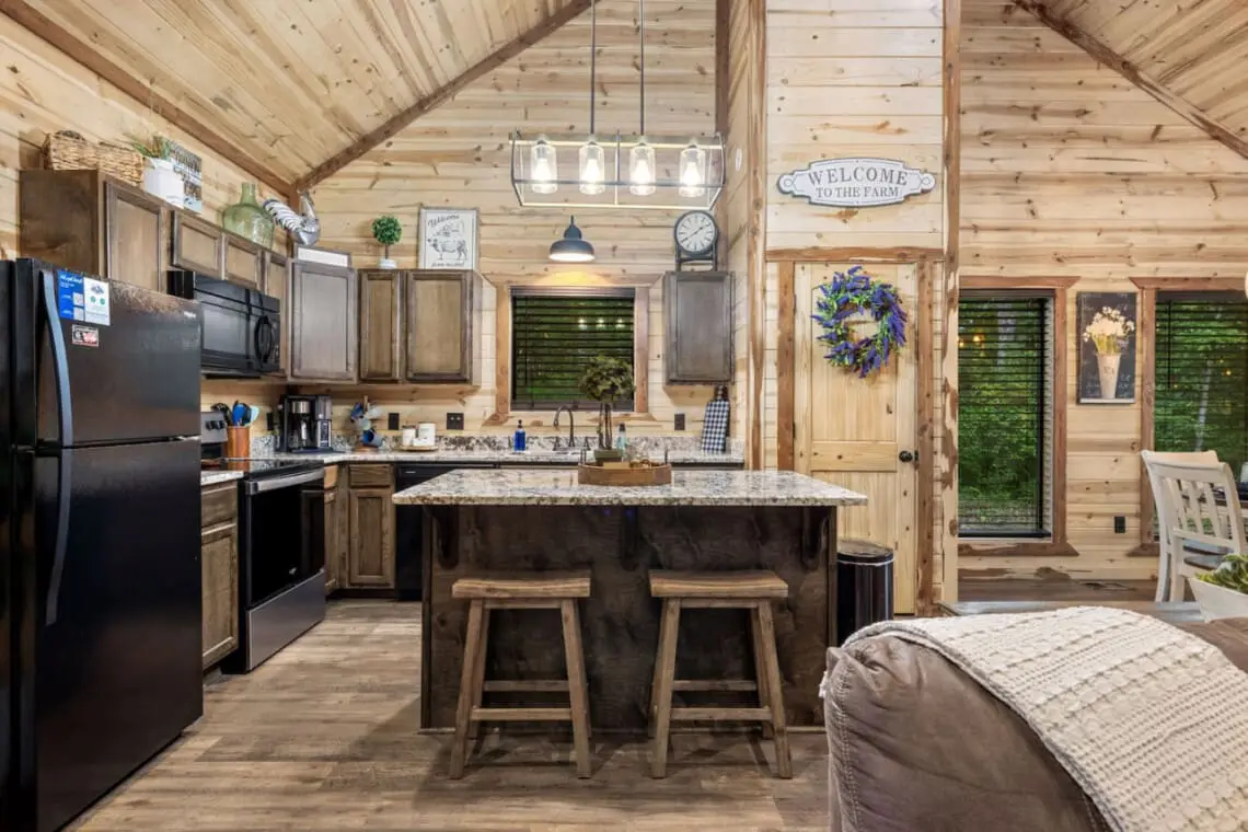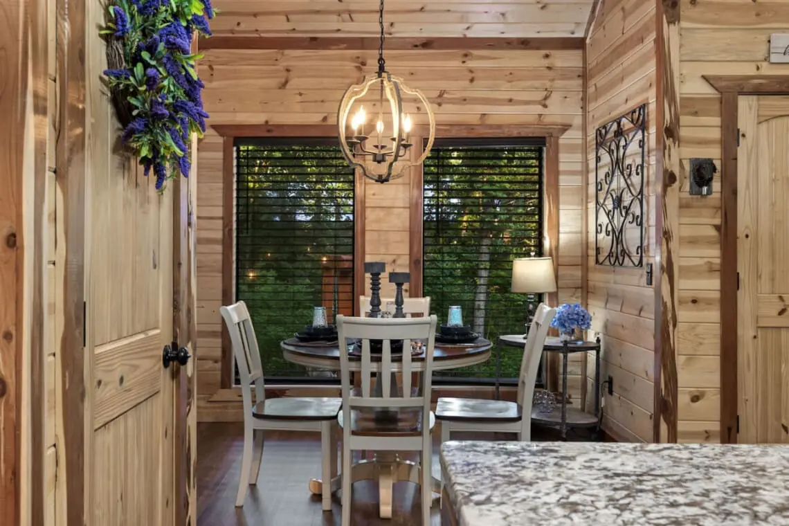 Mystic Moon is a studio-style one bedroom cabin perfect for a romantic couple’s getaway or small family! Located just minutes away from all of Hochatown & Broken Bow’s riveting attractions, here is what Mystic Moon has to offer: