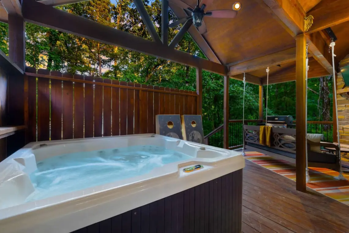 ๐ Hot Tub: Relax in the hot tub under the covered deck, featuring a privacy screen for ultimate seclusion and tranquility.