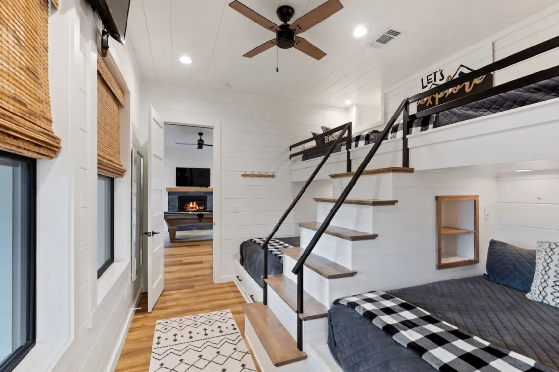 🌟 Bunkroom: A second bedroom with two twin-over-queen bunk beds, ideal for kids or group stays.