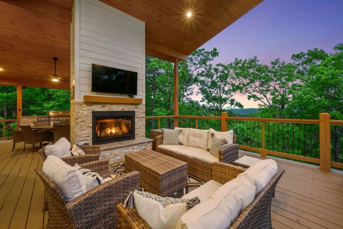 🌟 Outdoor Fireplace: Cozy up by the outdoor fireplace for warmth on cooler nights.