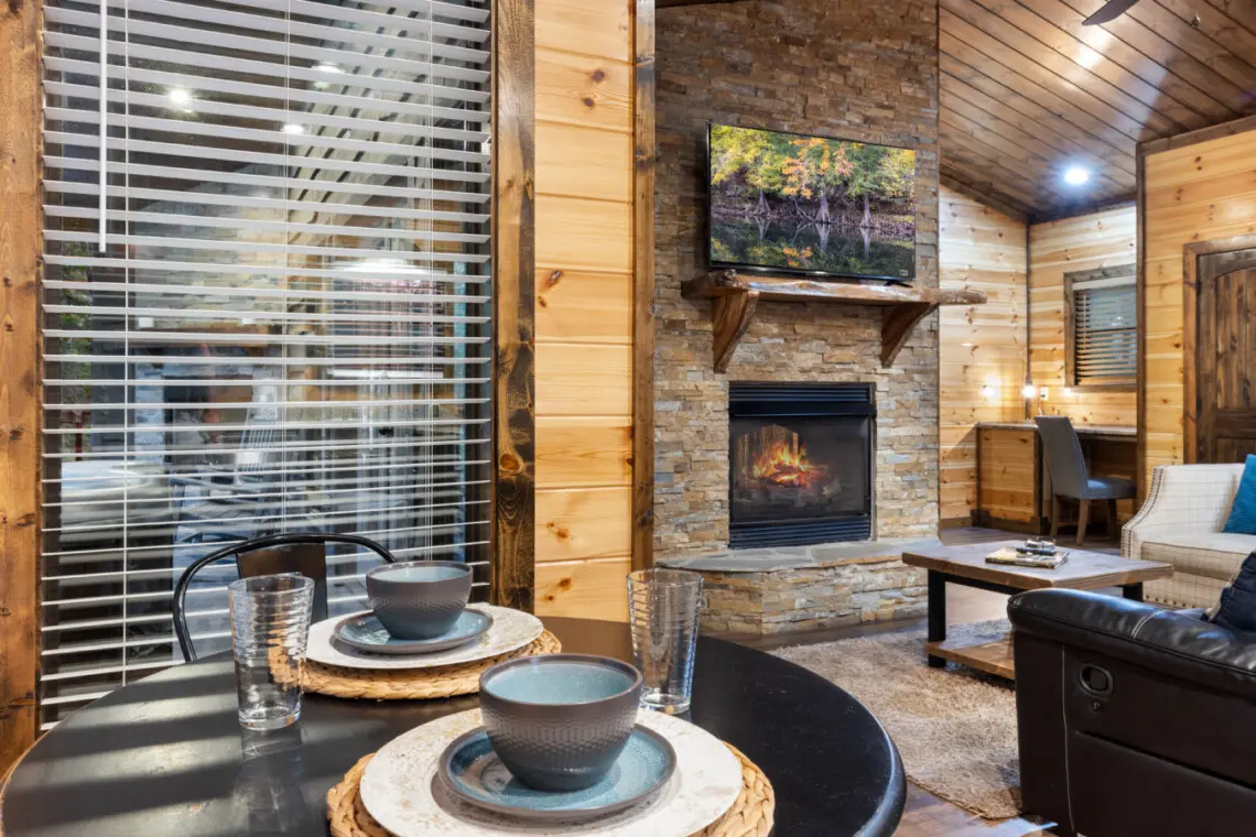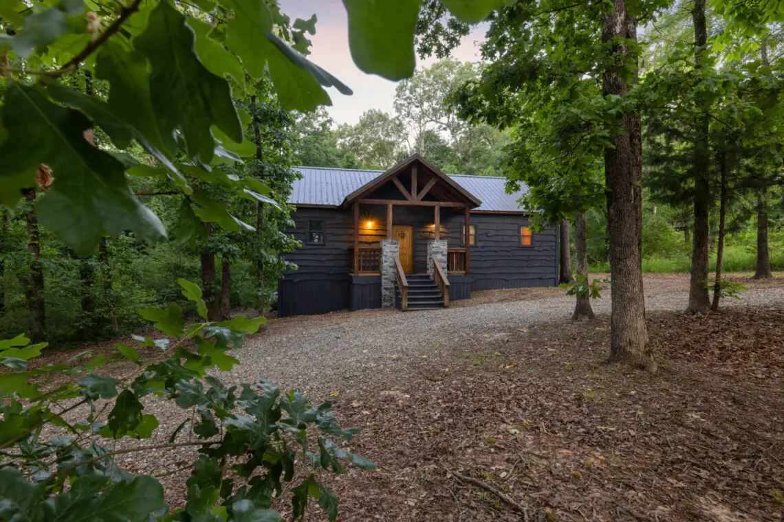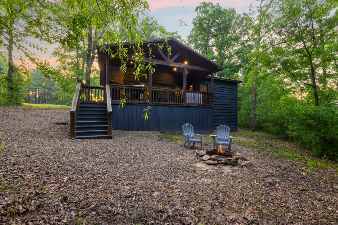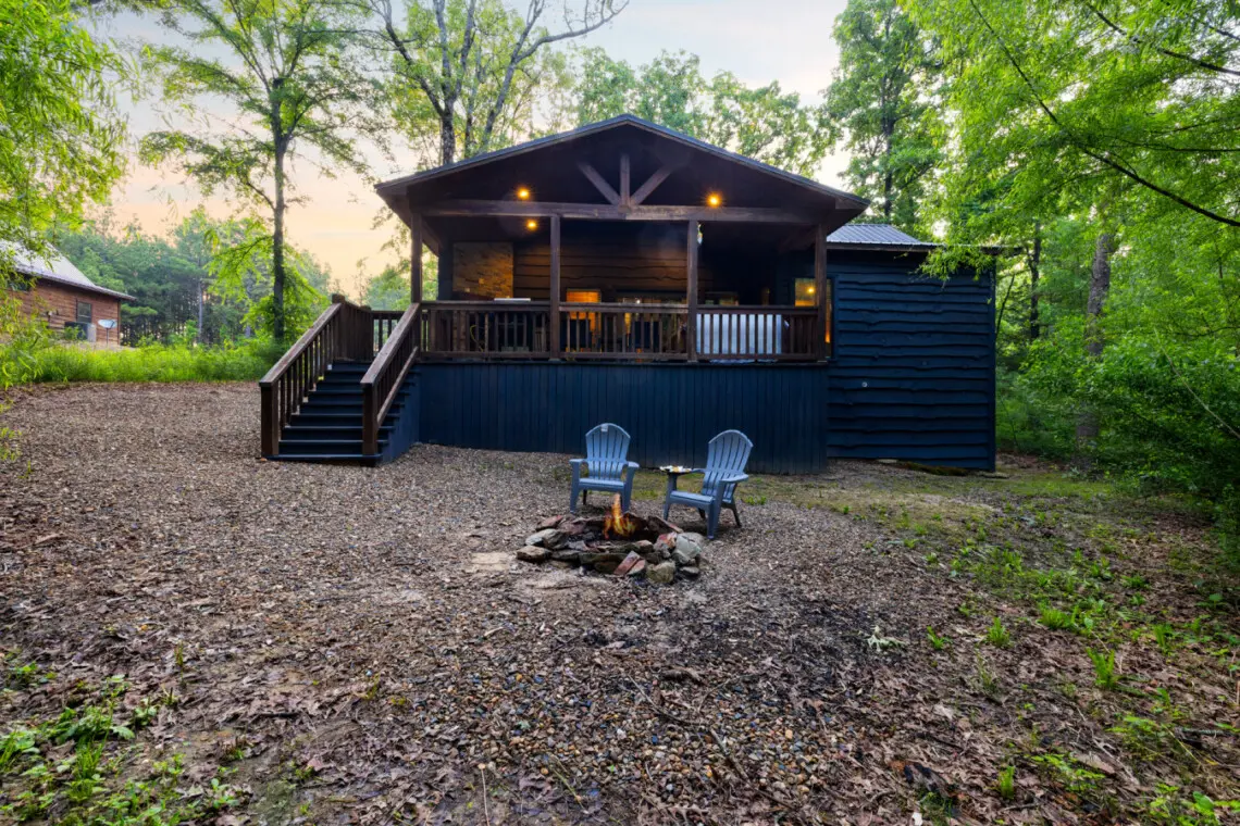 Cuddle up in rustic luxury at Stonewall Cabin, nestled in the Kiamichi pines. With its double-sided fireplace, outdoor hot tub, and serene patio, this romantic retreat beckons couples to unwind and indulge in cozy comfort. Here is what you can expect when you stay at Stonewall: