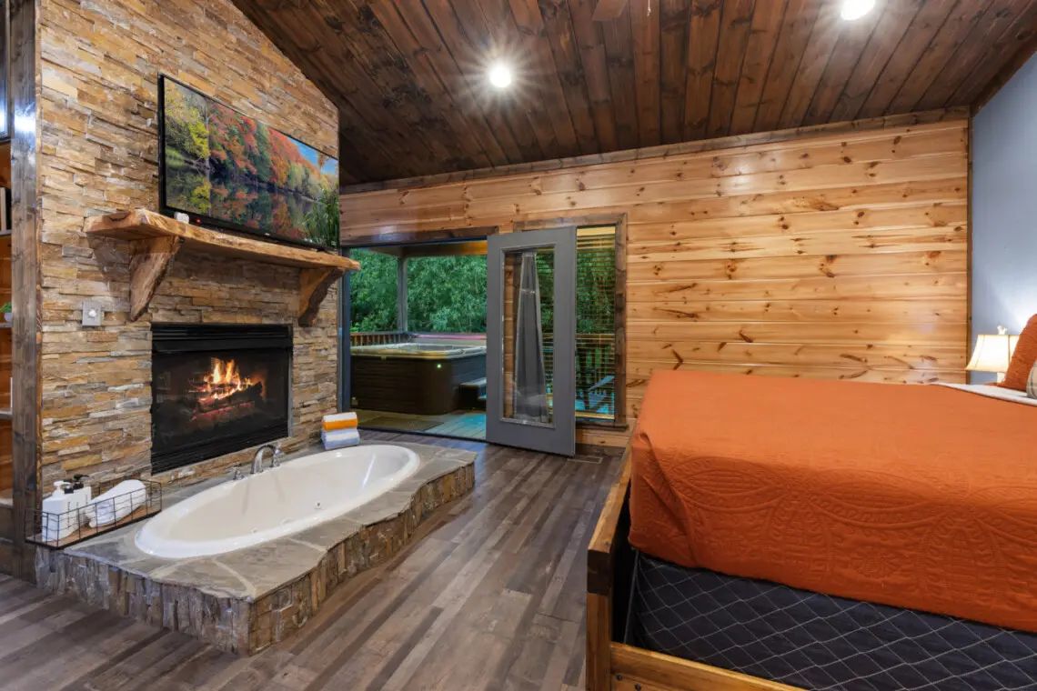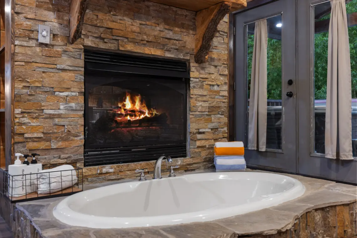💎 Soak-In Bath Tub: Indulge in a luxurious soak right next to the fireplace, creating a romantic and soothing atmosphere.