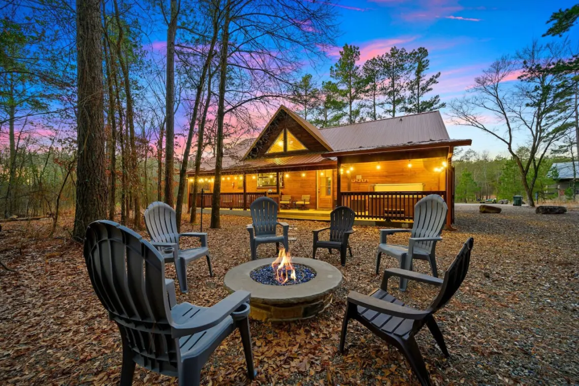 Welcome to The Copper Hideout! As the sun sets over this rustic escape, imagine yourself gathered around a crackling fire, surrounded by the warmth of laughter and the allure of outdoor adventures. From the inviting fire pit to the modern comforts indoors, every detail has been carefully curated: