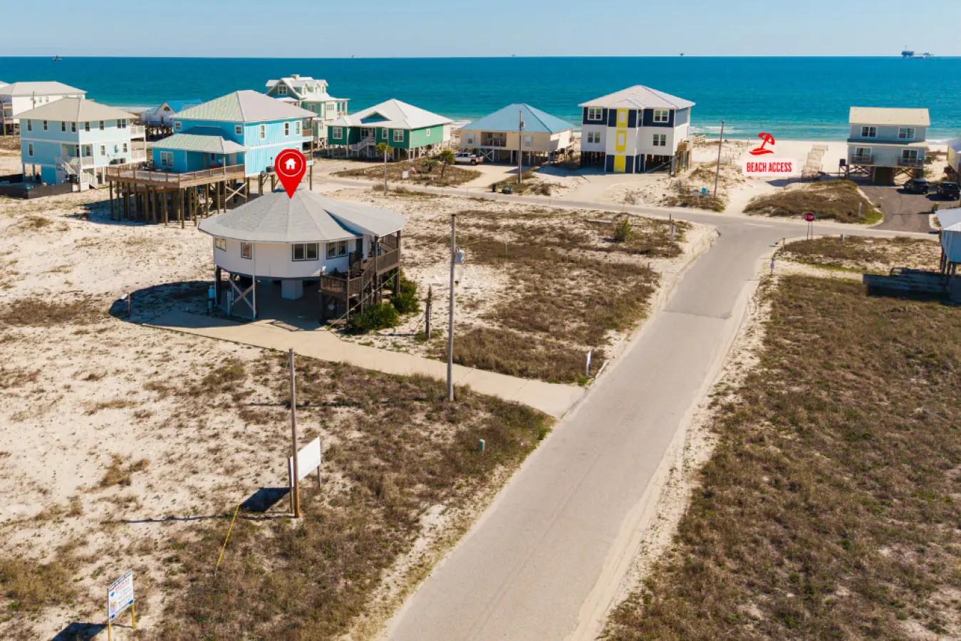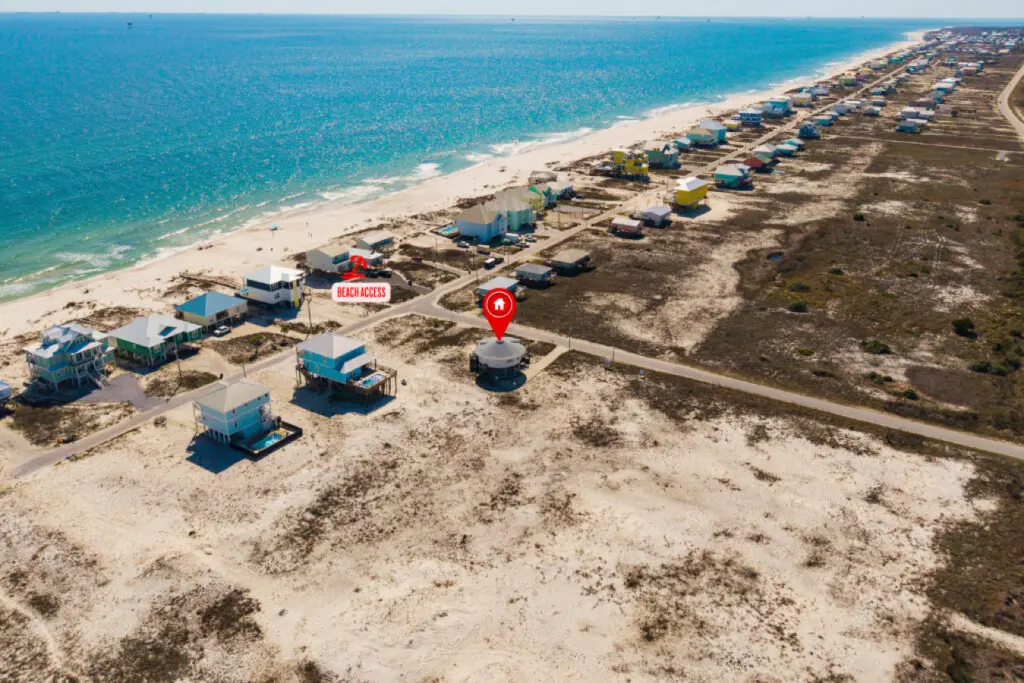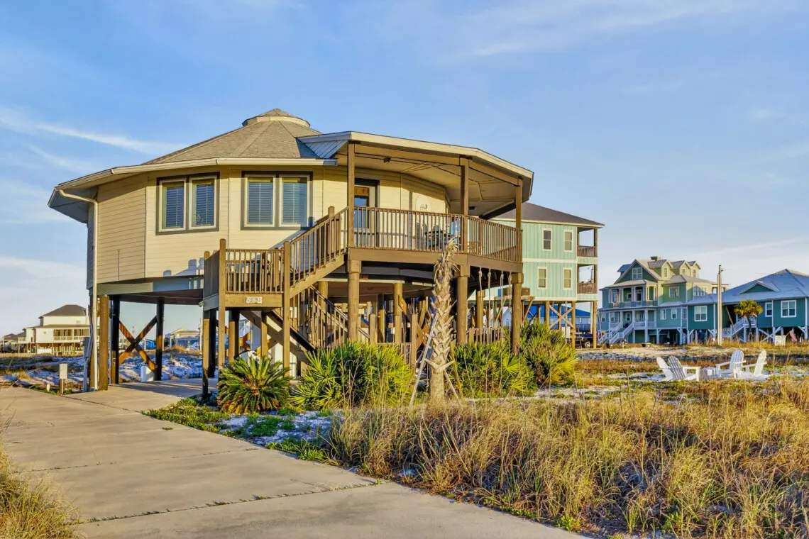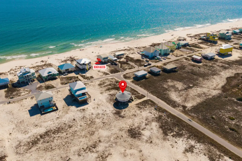 Nestled in a serene location with no other homes on our street and just a short 50’ walk to beach access, this Gold Fortified Round Beach House offers an unparalleled getaway. Bask in stunning views of both Mobile Bay and the Gulf of Mexico from every angle. Whether you’re seeking adventure or relaxation, “The Good Life” is your perfect coastal retreat.