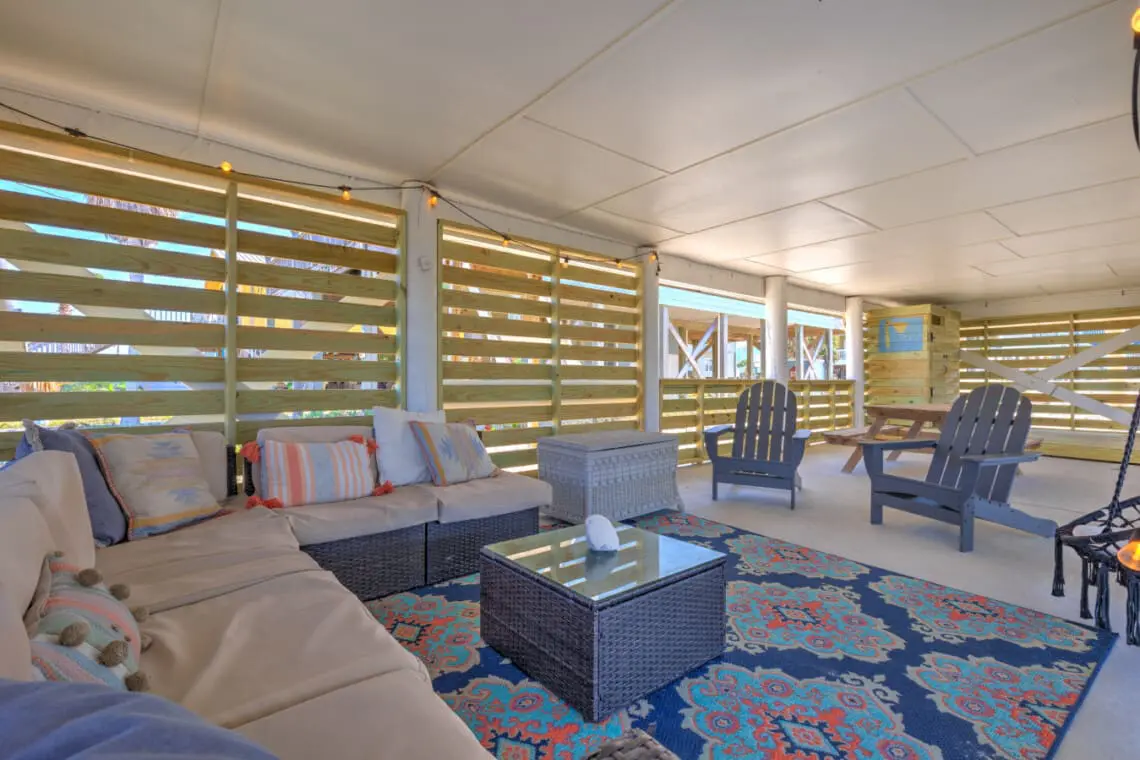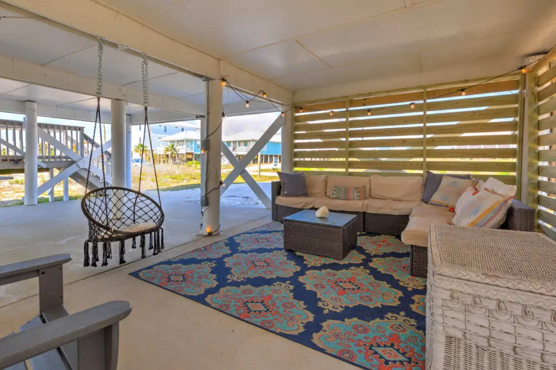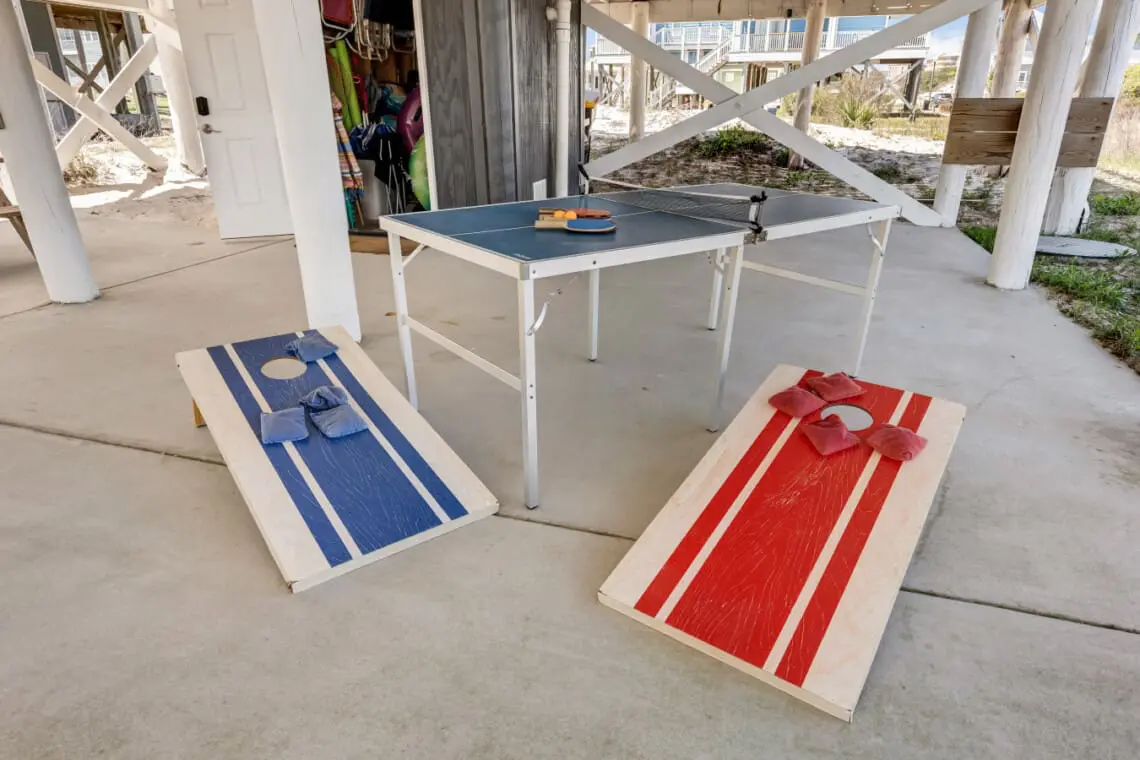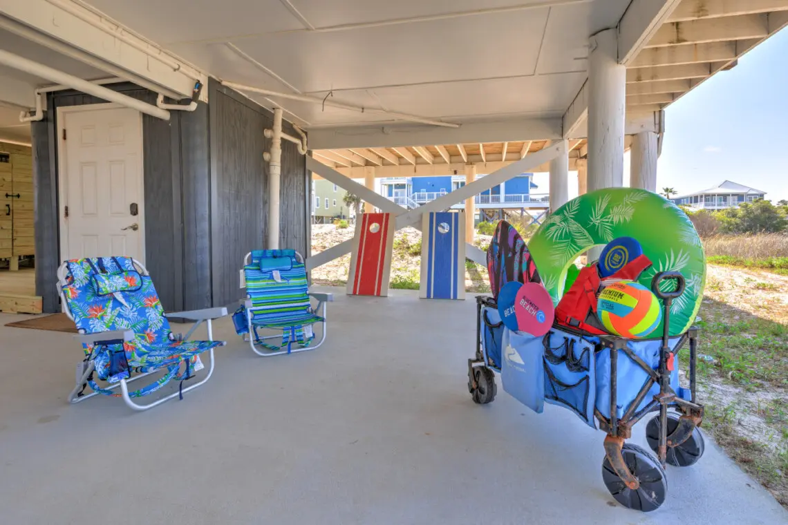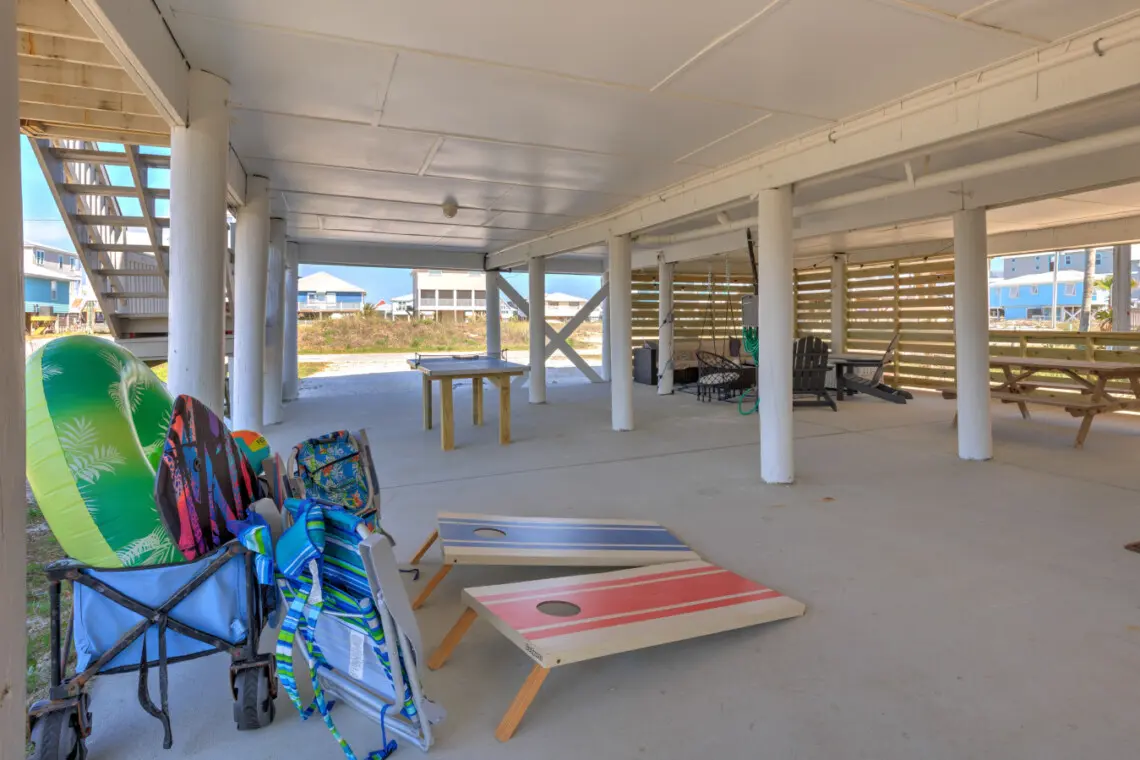 ๐๏ธ Covered Patio: Covered patio under the house, great for shrimp boils, cornhole, or relaxing with a book.