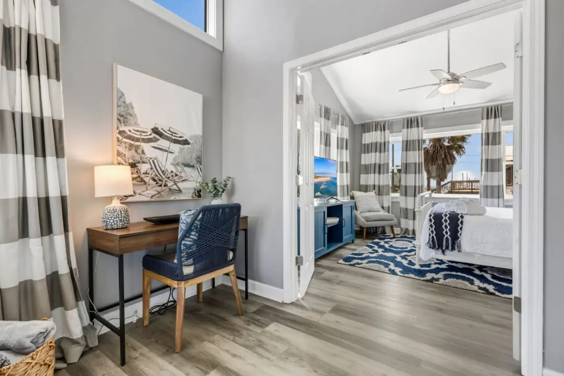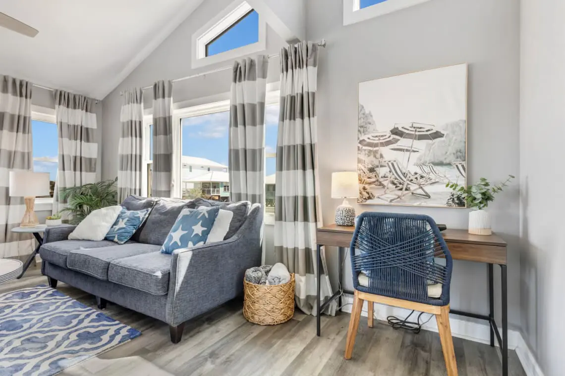 Just a short walk to easy beach access and the stunning Gulf waters, The Sandpiper is a true beachside retreat with its crisp color palette, soaring valuated ceilings, and an abundance of natural light. Here are the highlights:
