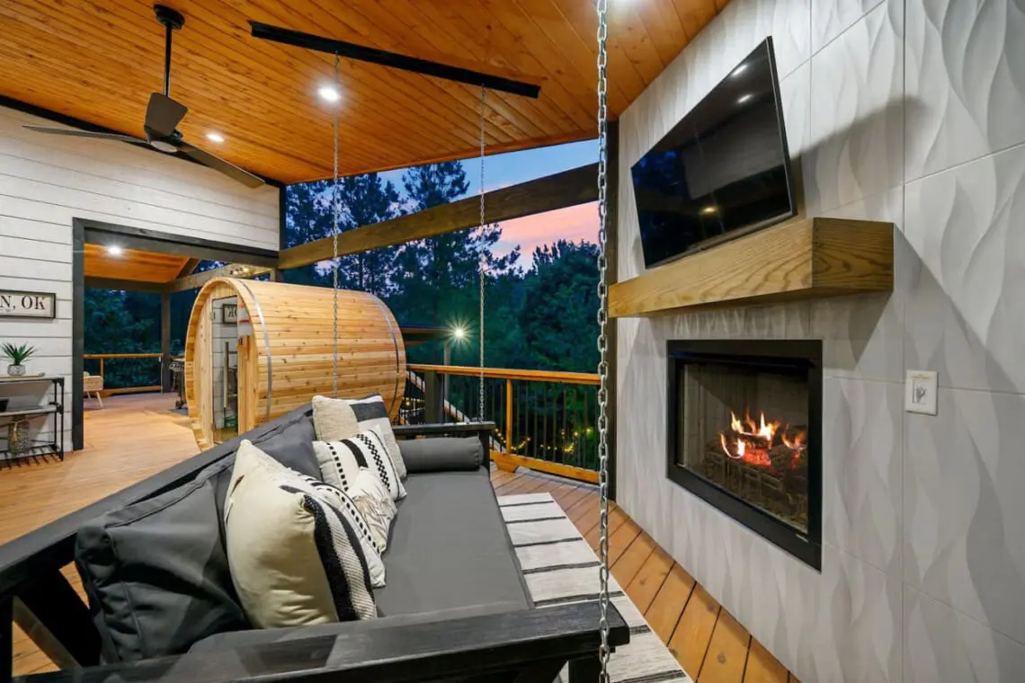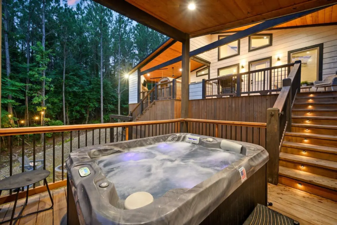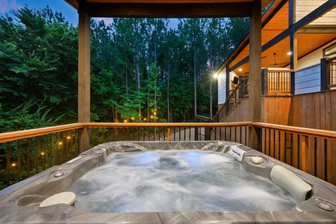 🌿 Hot Tub: Nestled beneath the treetops, the bubbling spa is perfect for evening soaks.