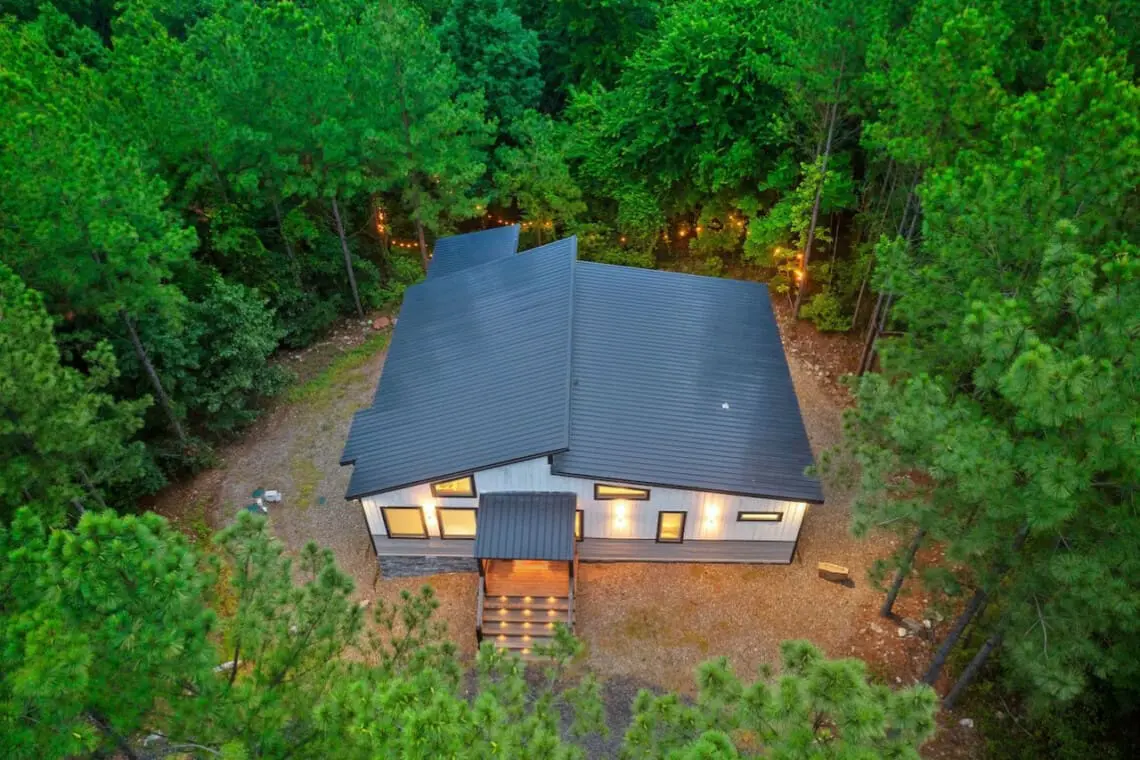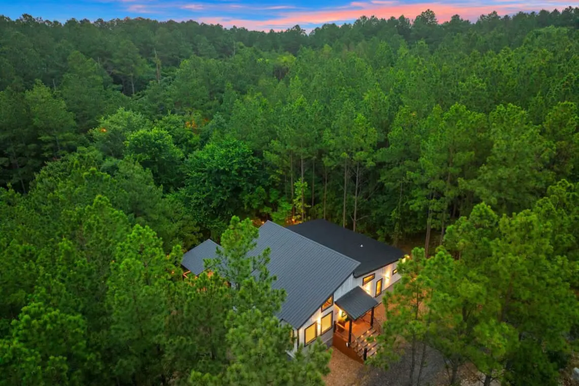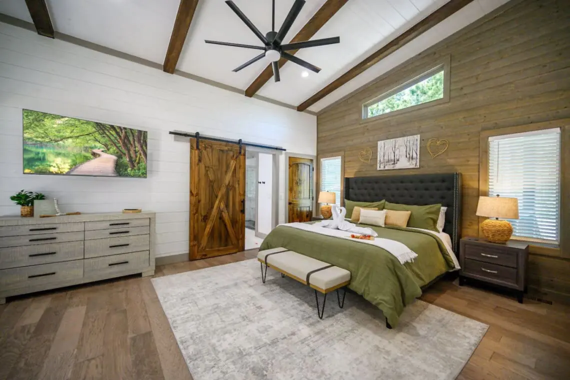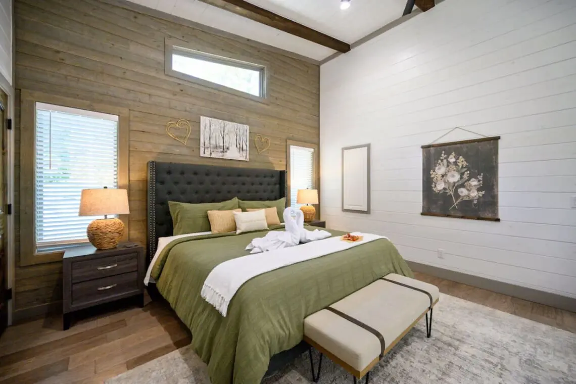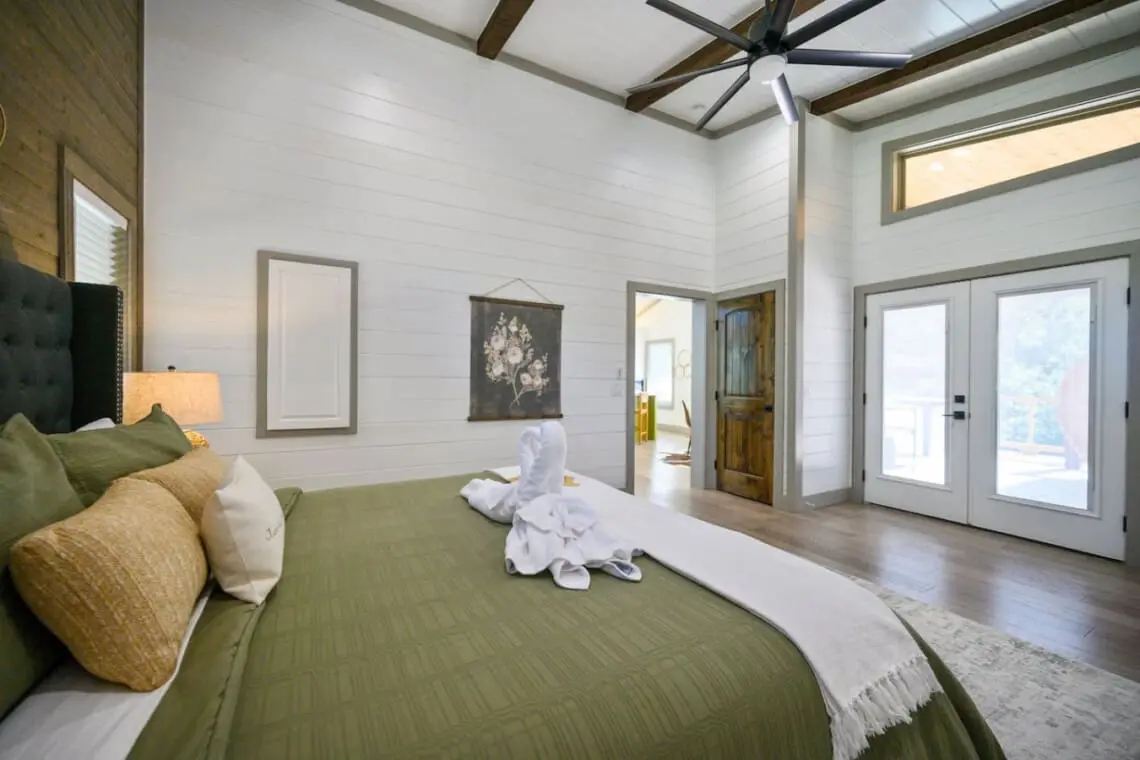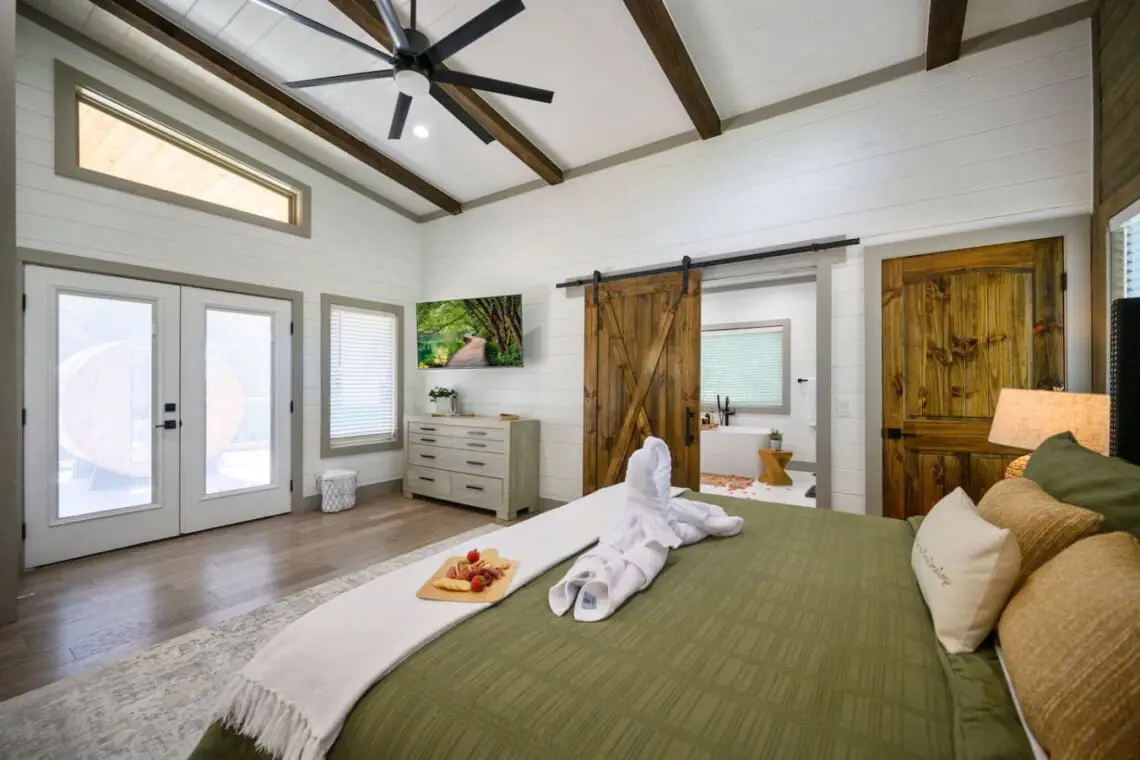 🌿 King Bedroom: A plush king bed with soft linens and serene forest views promises restful nights.