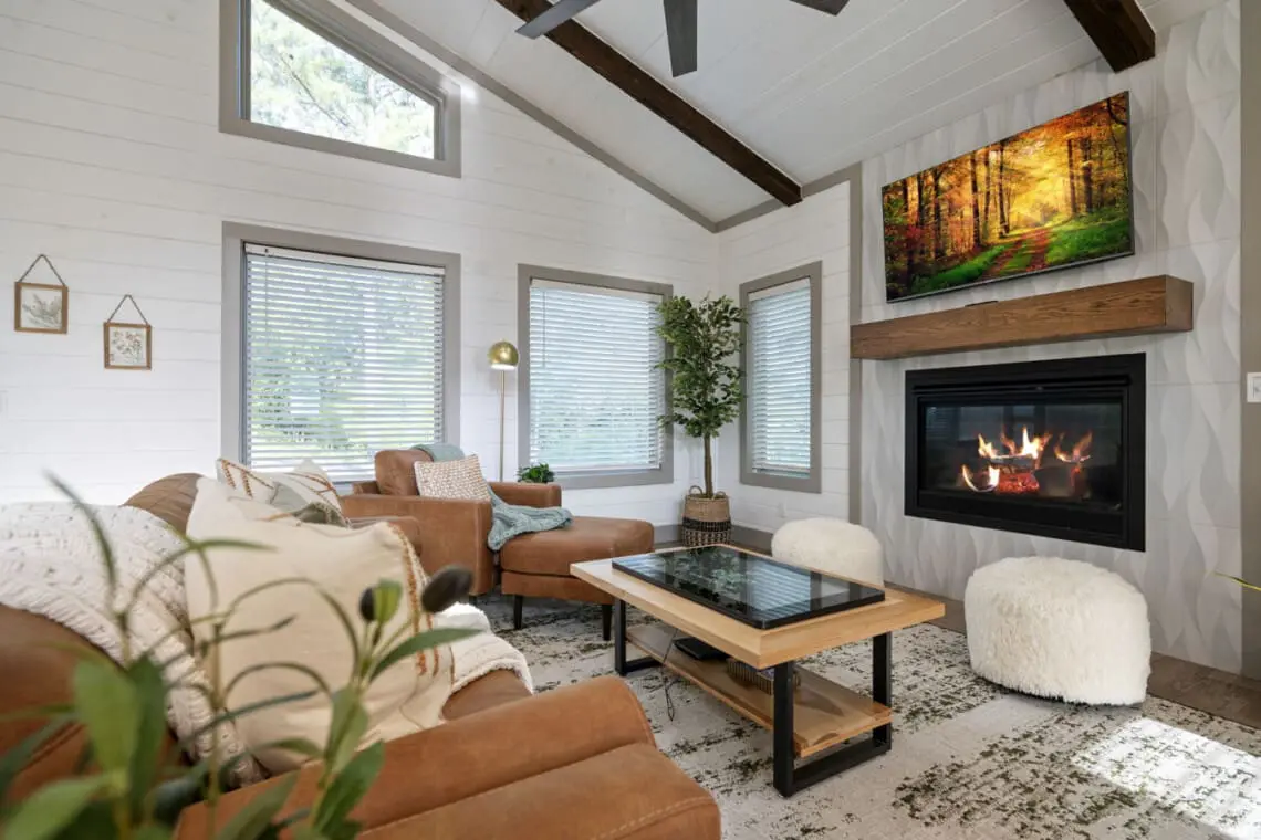 🌿 Indoor Fireplace: Set the mood with a cozy fire and let the glow warm your evenings.