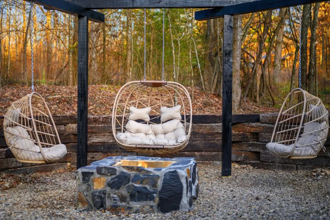 🌻 Fire Pit Swing Area: Experience the magic of evenings around a crackling fire in the fire pit swing area, complete with inviting egg chairs for ultimate relaxation.