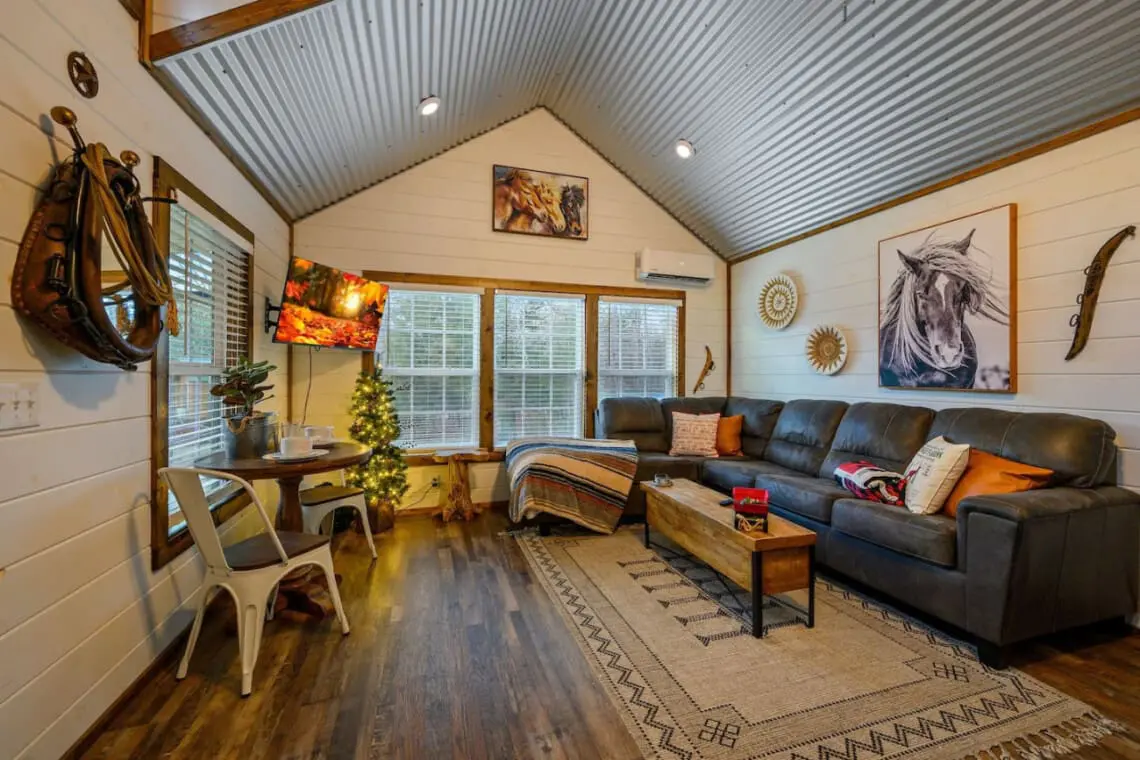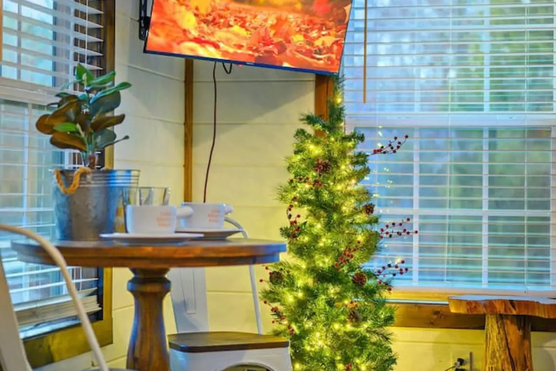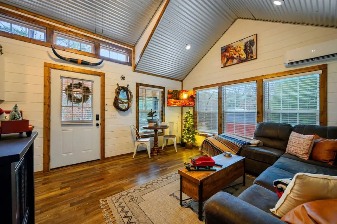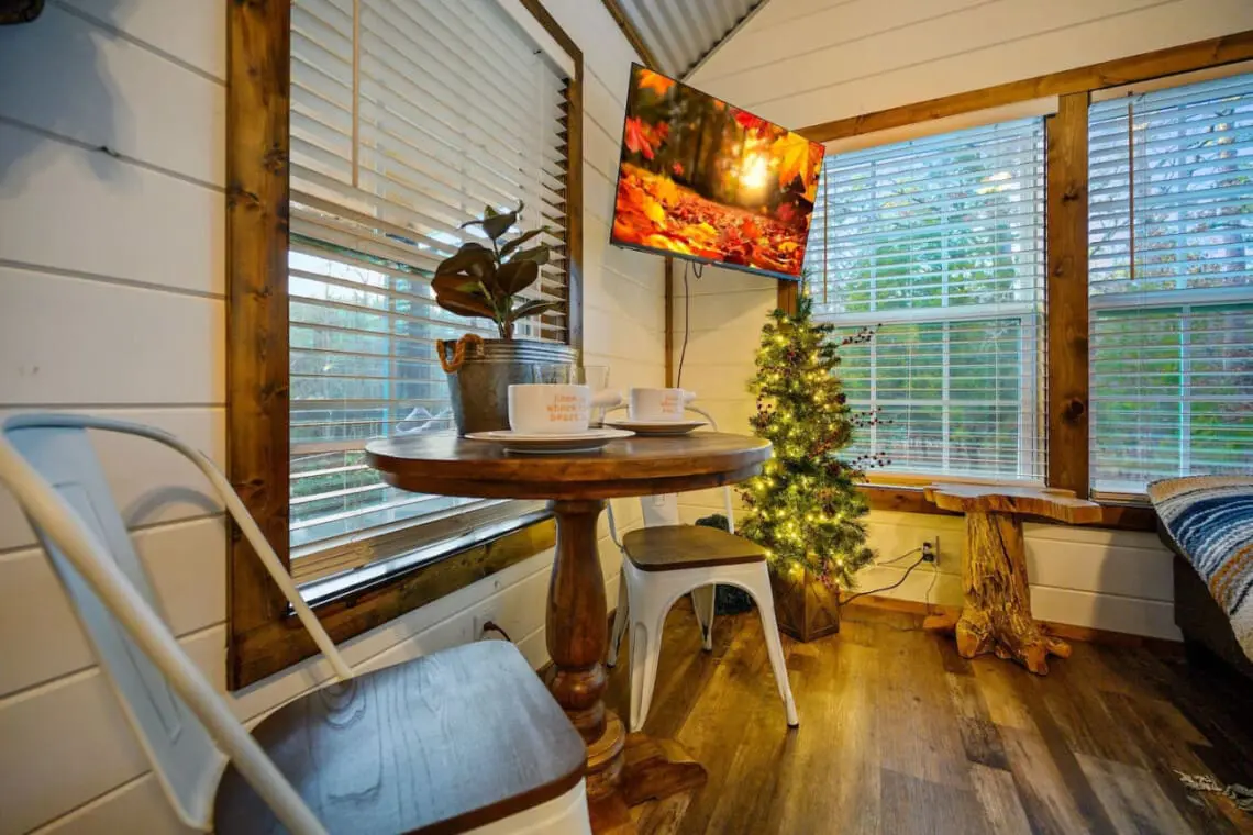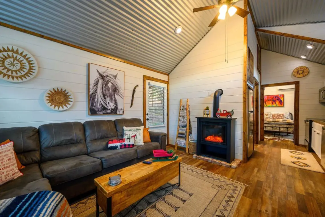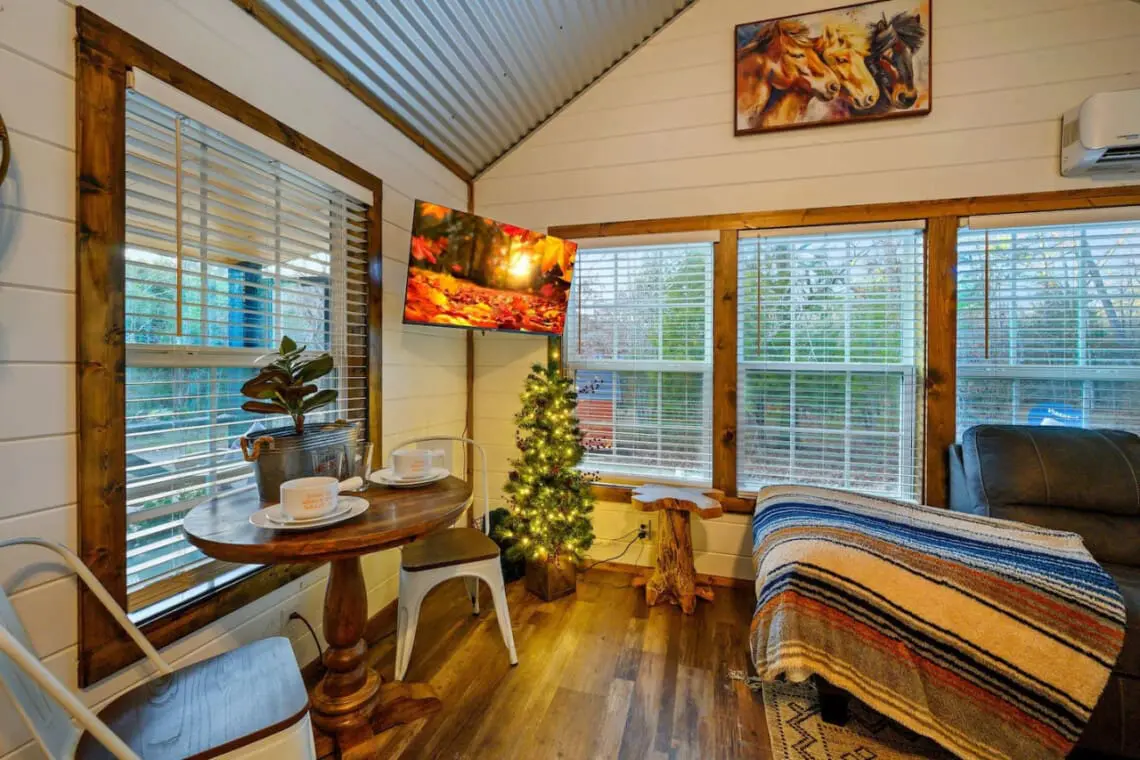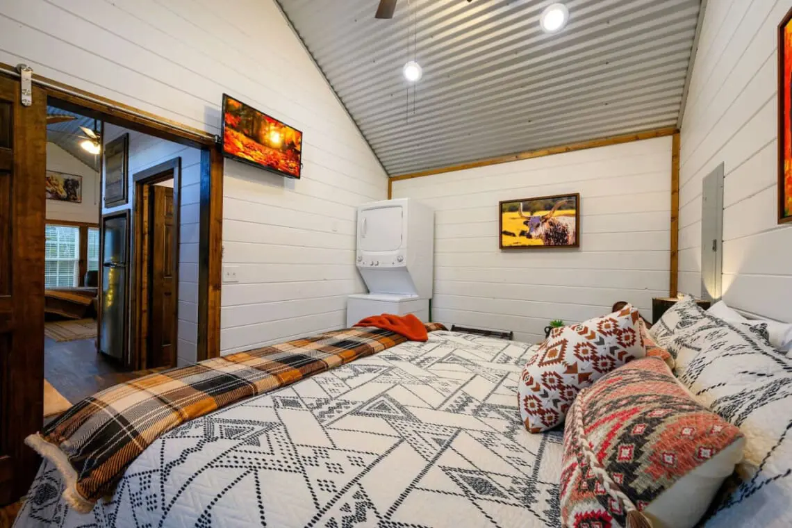 🌻 Rustic Farmhouse Theme: Immerse yourself in the cabin’s warm ambiance with its tasteful rustic farmhouse theme, creating a cozy and inviting atmosphere.
