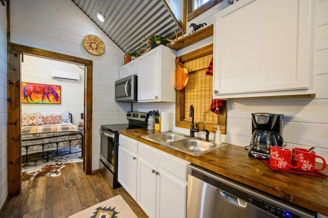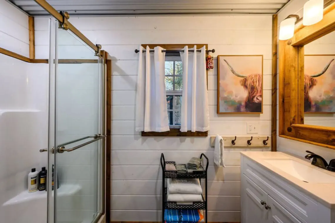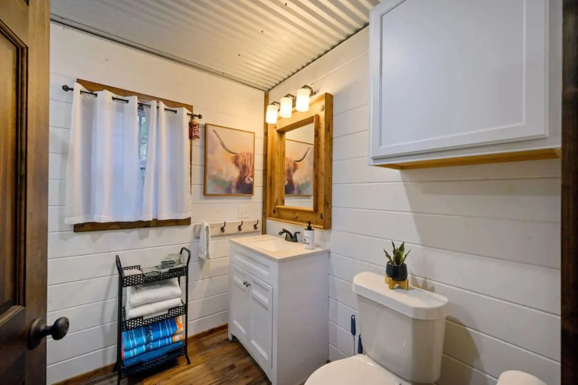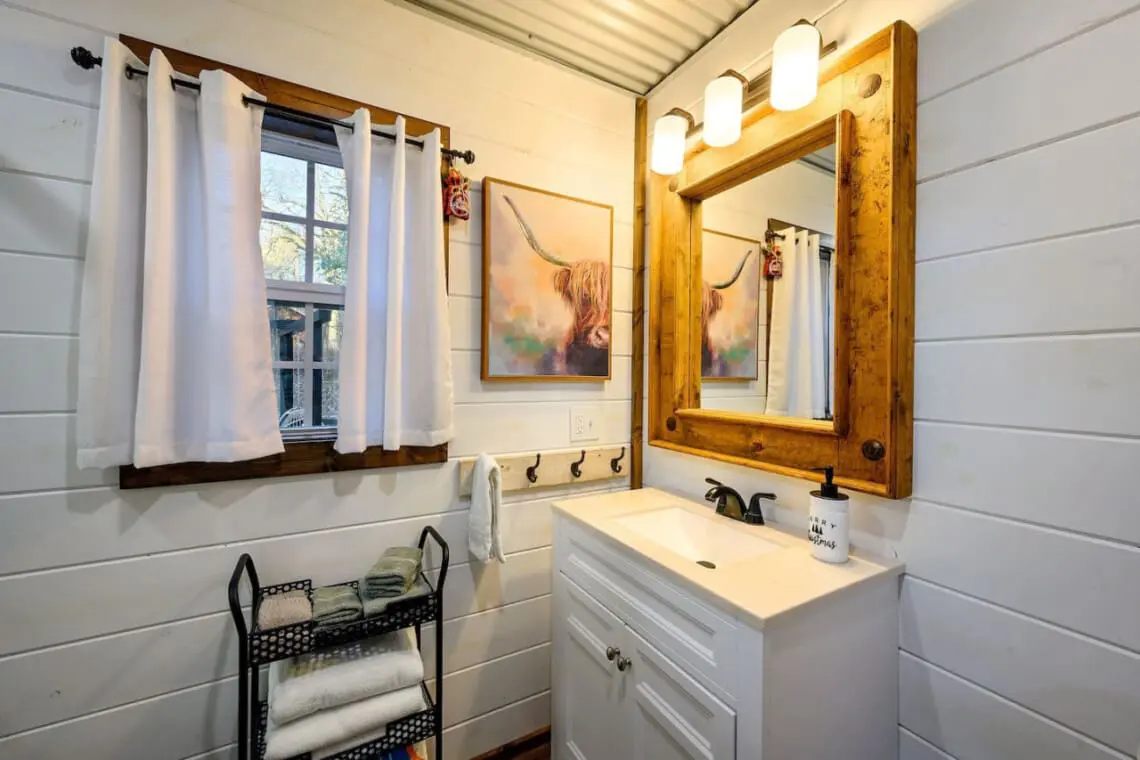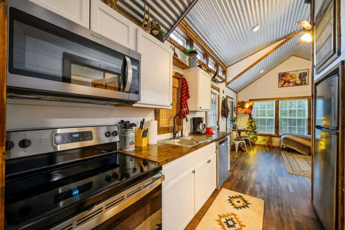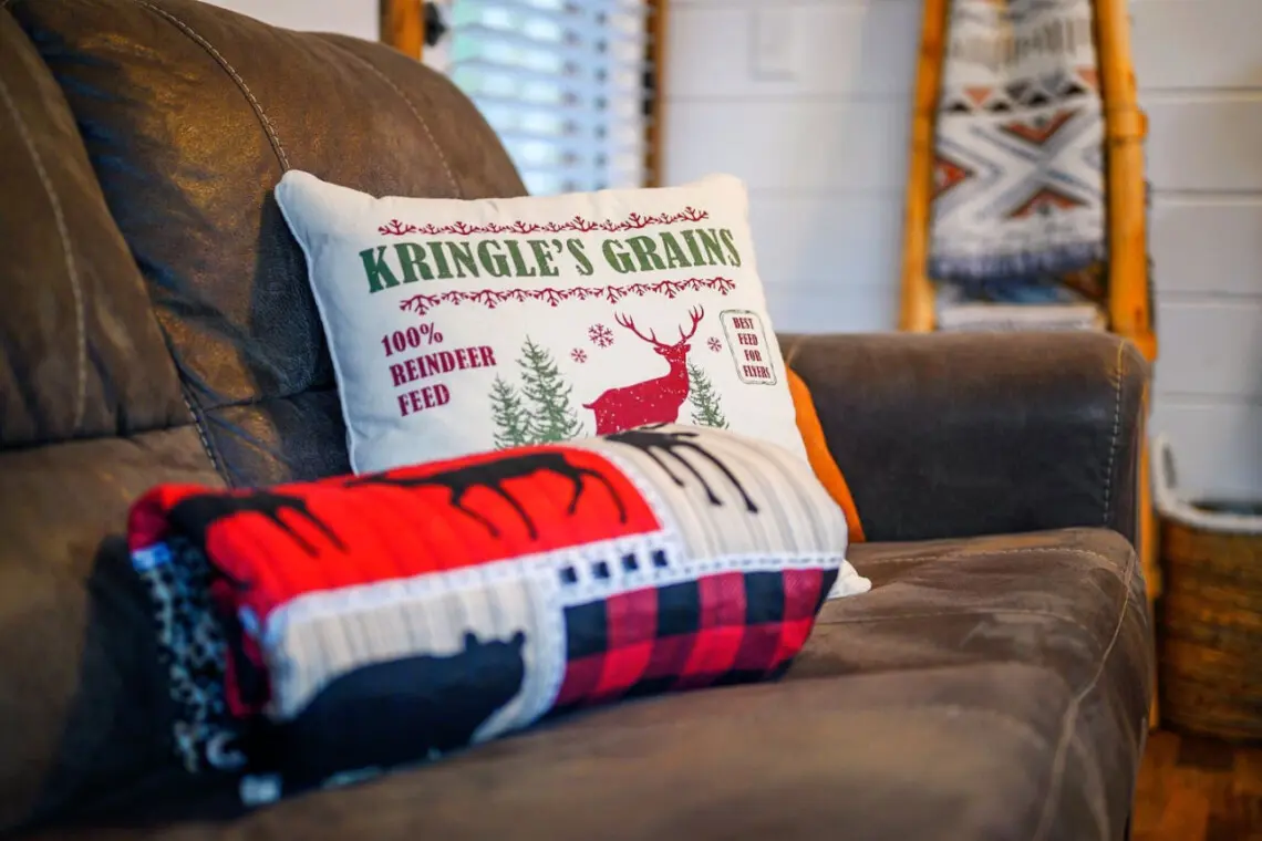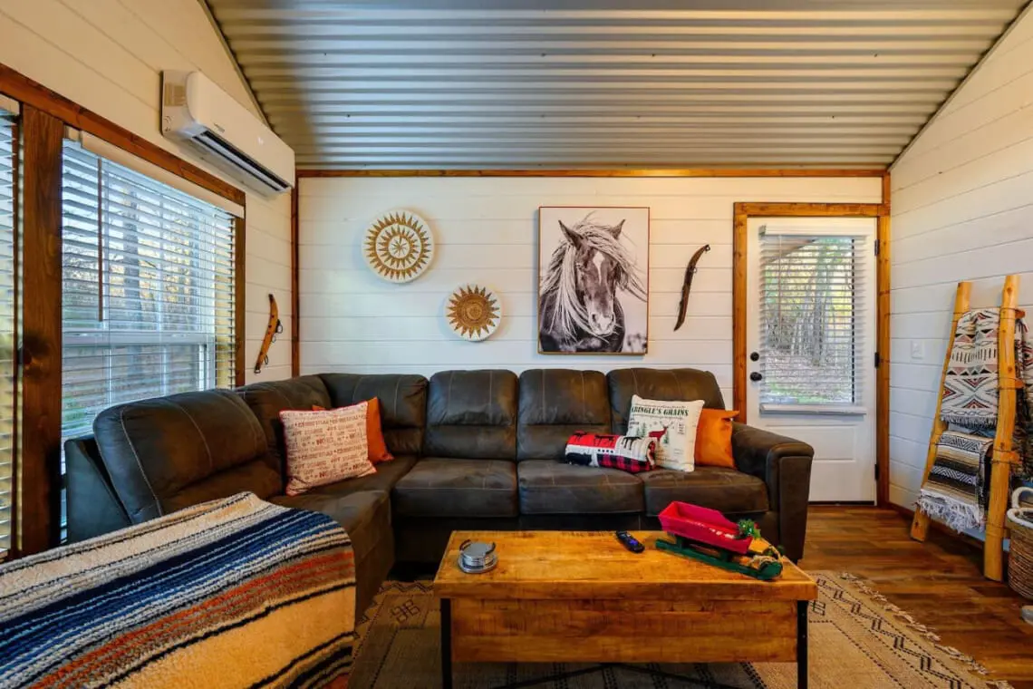 🌻 Rustic Farmhouse Theme: Immerse yourself in the cabin’s warm ambiance with its tasteful rustic farmhouse theme, creating a cozy and inviting atmosphere.