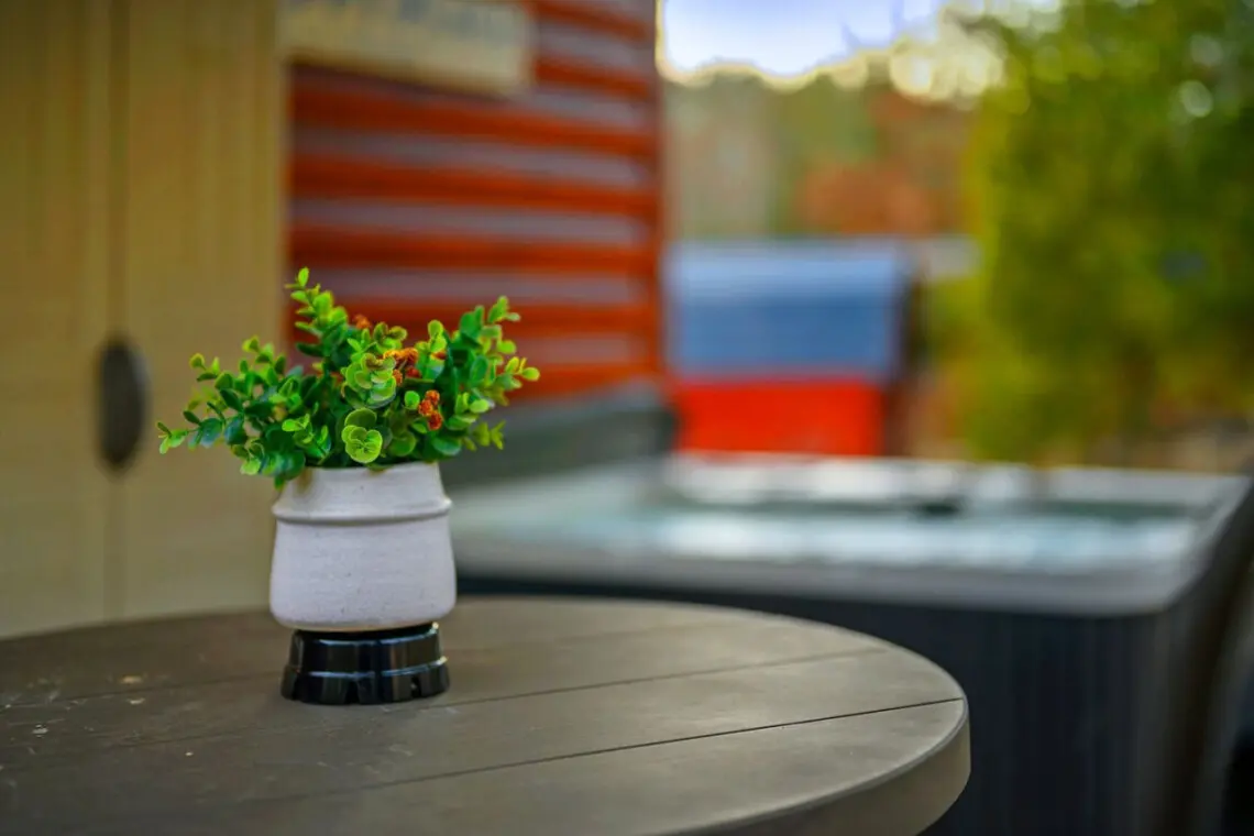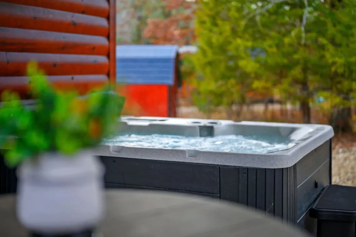 🌻 Covered Patio: Indulge in the luxury of a covered patio featuring a rejuvenating hot tub, a charming dining table, and a charcoal grill—perfect for creating memories and savoring delicious meals.
